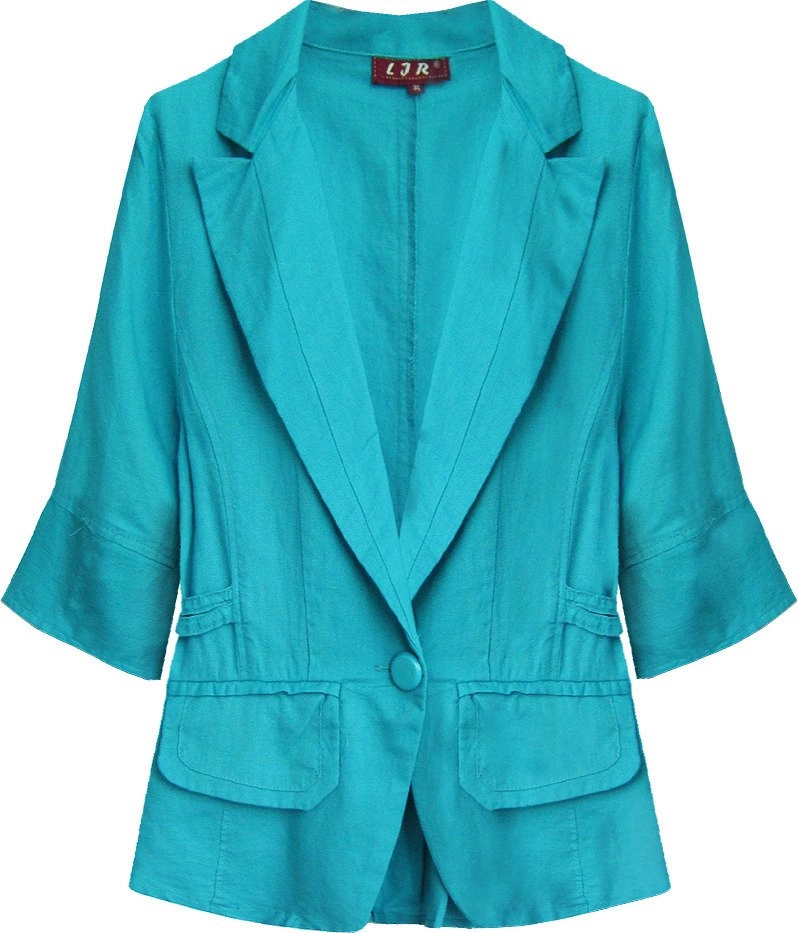 WEŁNIANY ŻAKIET Z KRÓTKIM RĘKAWEM MORSKI (X1021X)