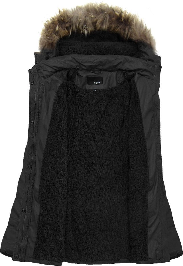 - Posiada stójkę oraz odpinany (na zamek) kaptur z futerkiem
