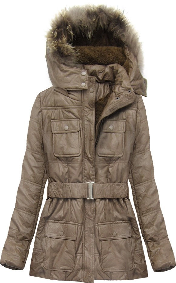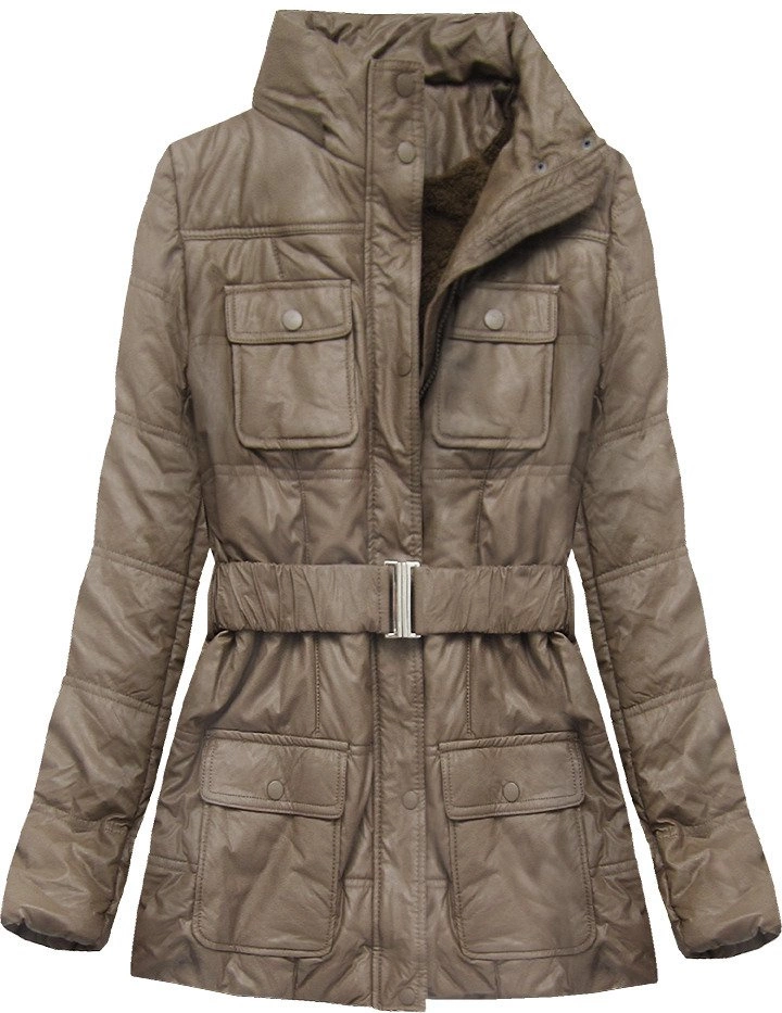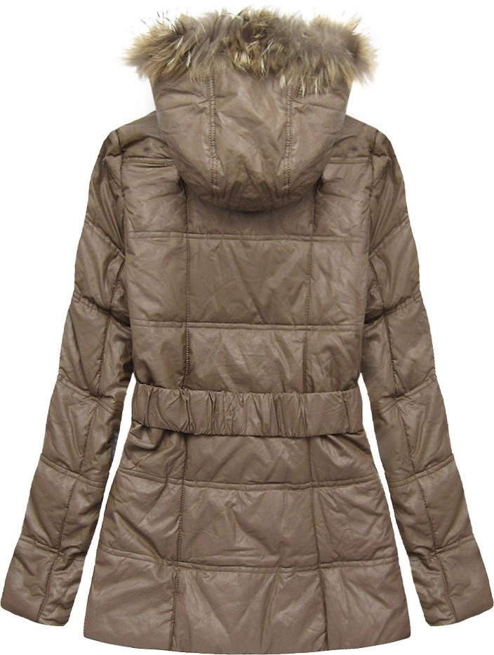 KURTKA Z EKOSKÓRY Z FUTERKIEM BRĄZOWA (X6005X)