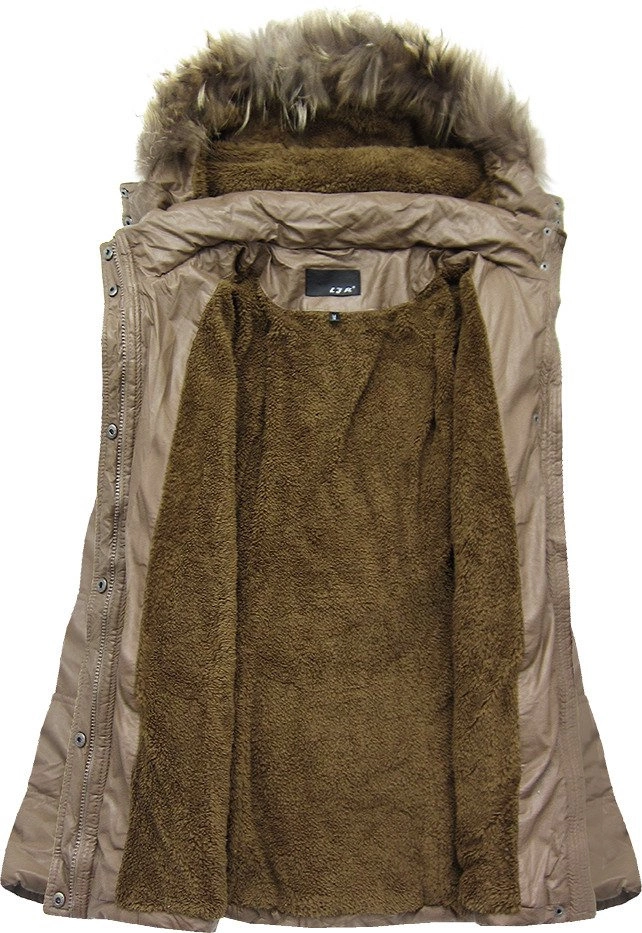 - Posiada stójkę oraz odpinany (na zamek) kaptur z futerkiem
