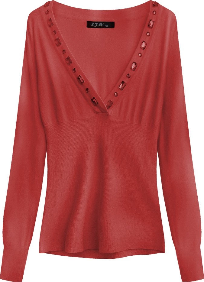 SWETER Z OZDOBNYMI KAMIENIAMI CZERWONY (1519)