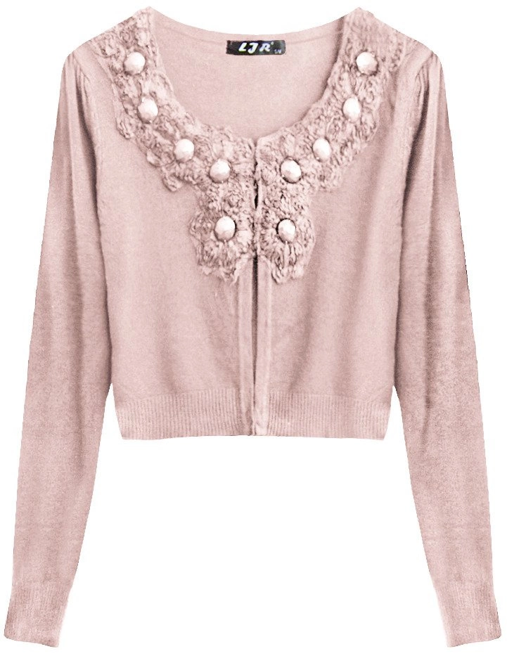 KRÓTKI SWETEREK ZE ZDOBIENIAMI PUDROWY RÓŻ (1523)