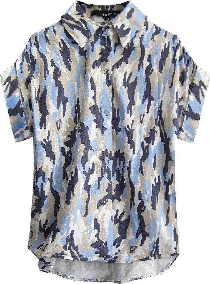 BAWEŁNIANA KOSZULA W MORO NIEBIESKO-GRANATOWA (0823)