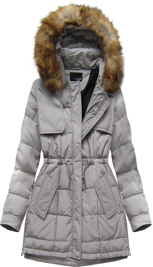 PIKOWANA KURTKA Z PUCHEM NATURALNYM SZARA (8081)