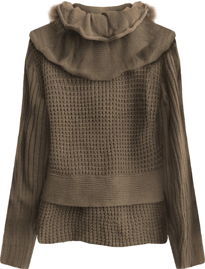 SWETER O GRUBYM SPLOCIE BRĄZOWY (1619)