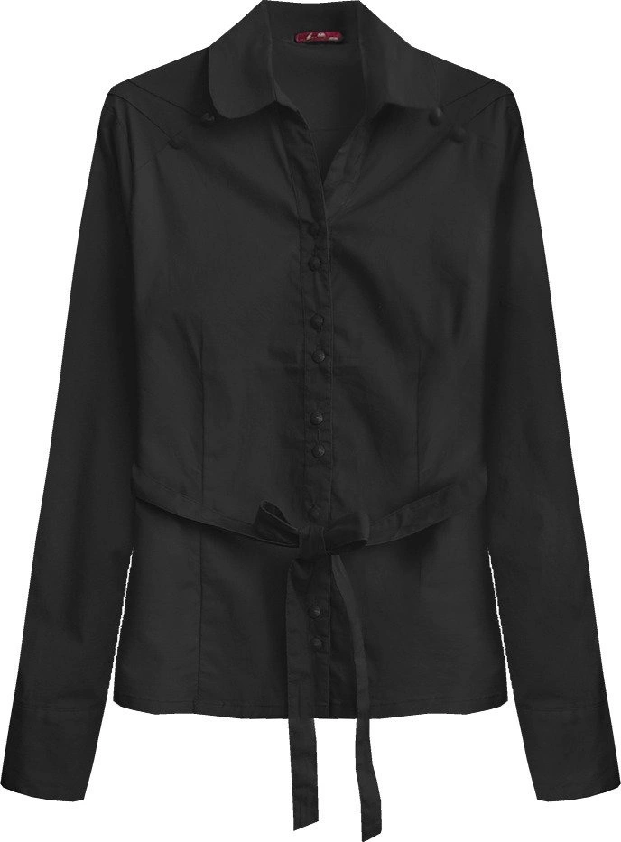 BAWEŁNIANA KOSZULA Z PASKIEM CZARNA (1017)