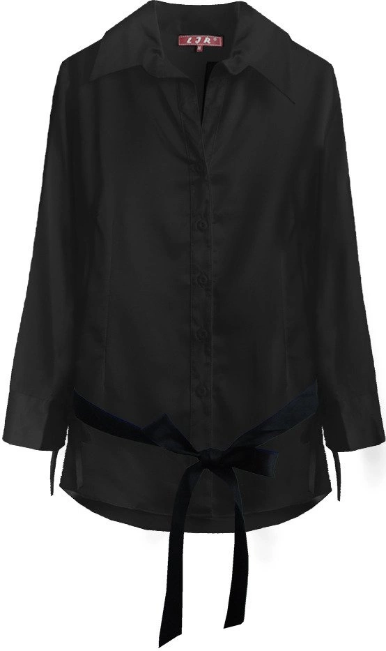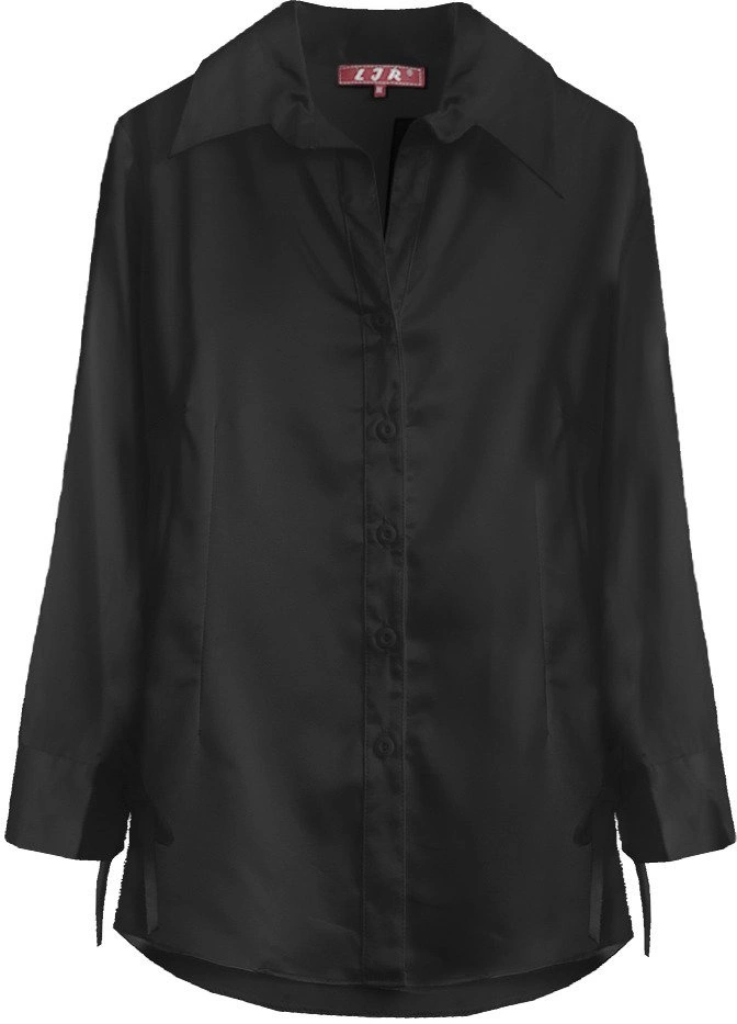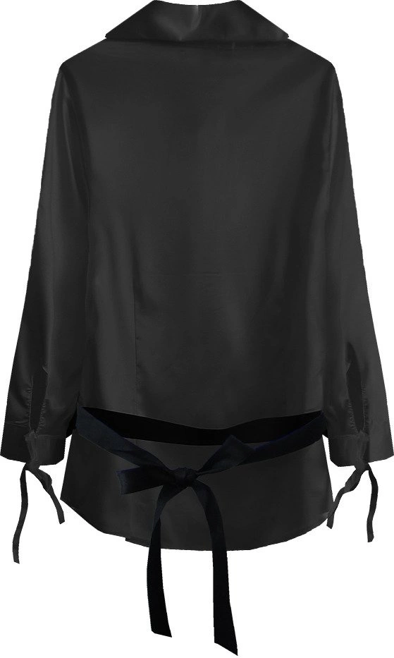 SATYNOWA KOSZULA Z PASKIEM CZARNA (X1003X)