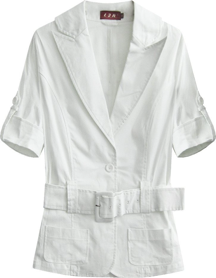 BAWEŁNIANY ŻAKIET Z KRÓTKIM RĘKAWEM BIAŁY (X1012X)