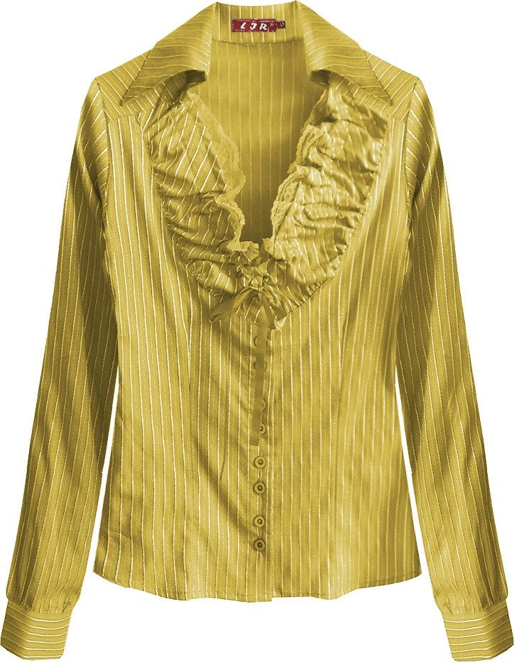 KOSZULA W PASKI Z KORONKĄ ŻÓŁTA (11072)