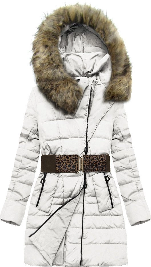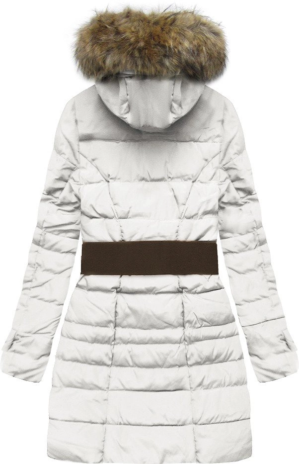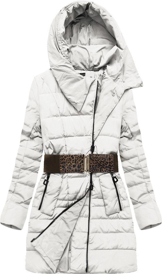 KURTKA Z KAPTUREM I PASKIEM BIAŁA (X1213X)