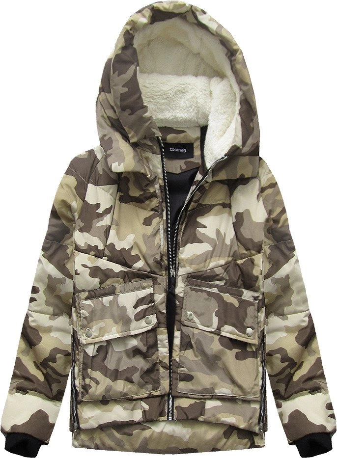 KRÓTKA KURTKA Z PUCHEM NATURALNYM MORO-BEŻOWA (C715)