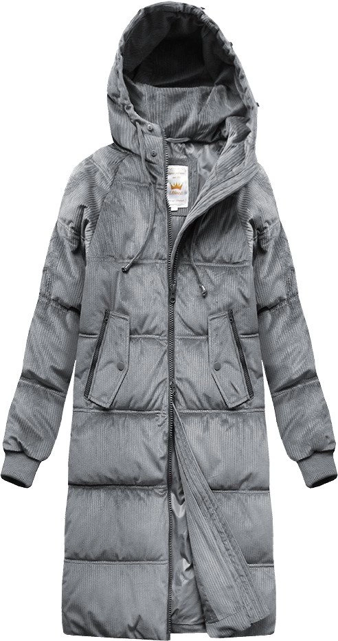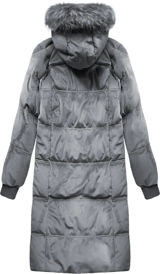 Opinie o Zimowa sztruksowa kurtka damska z kapturem szara (7763)