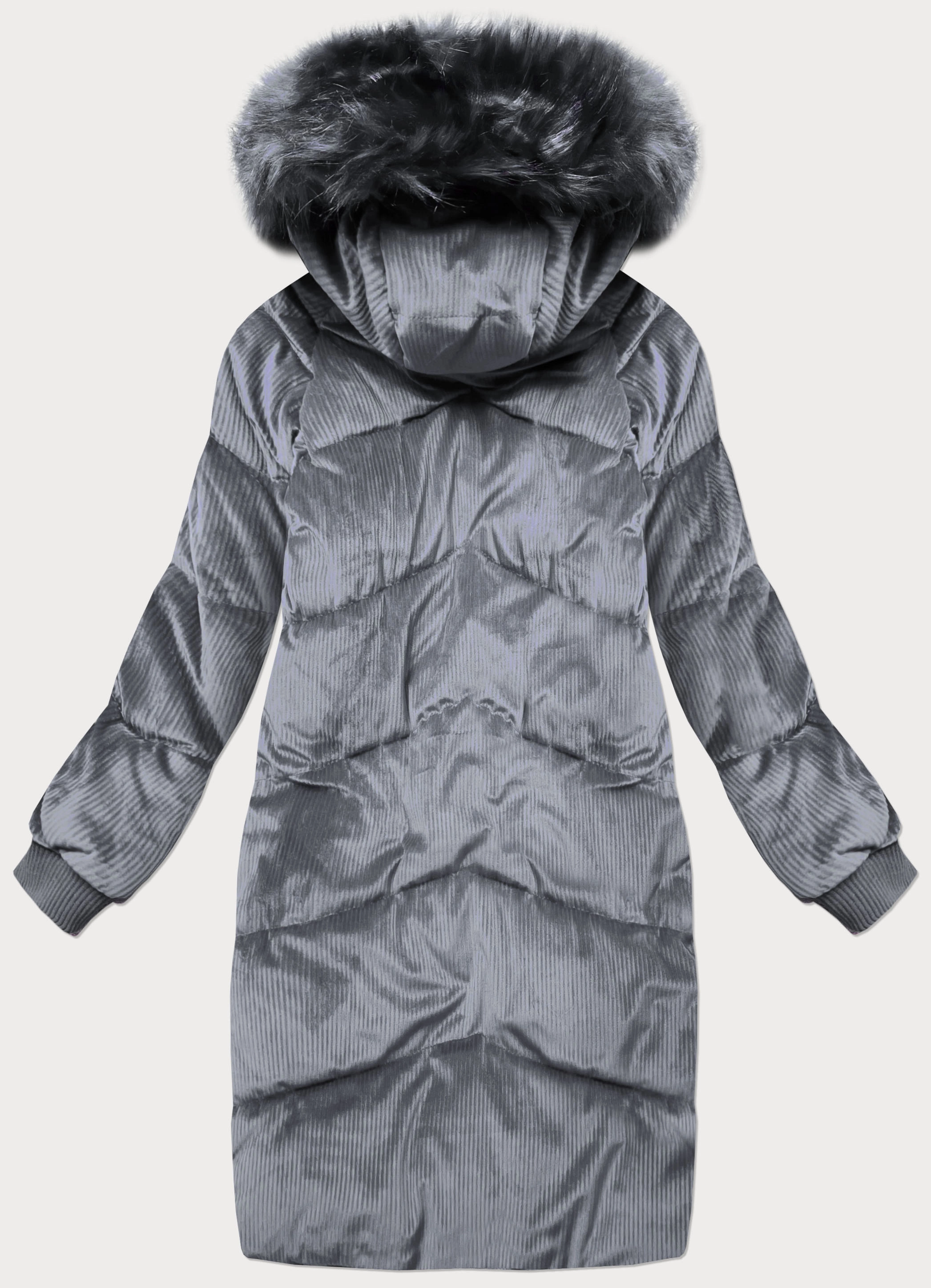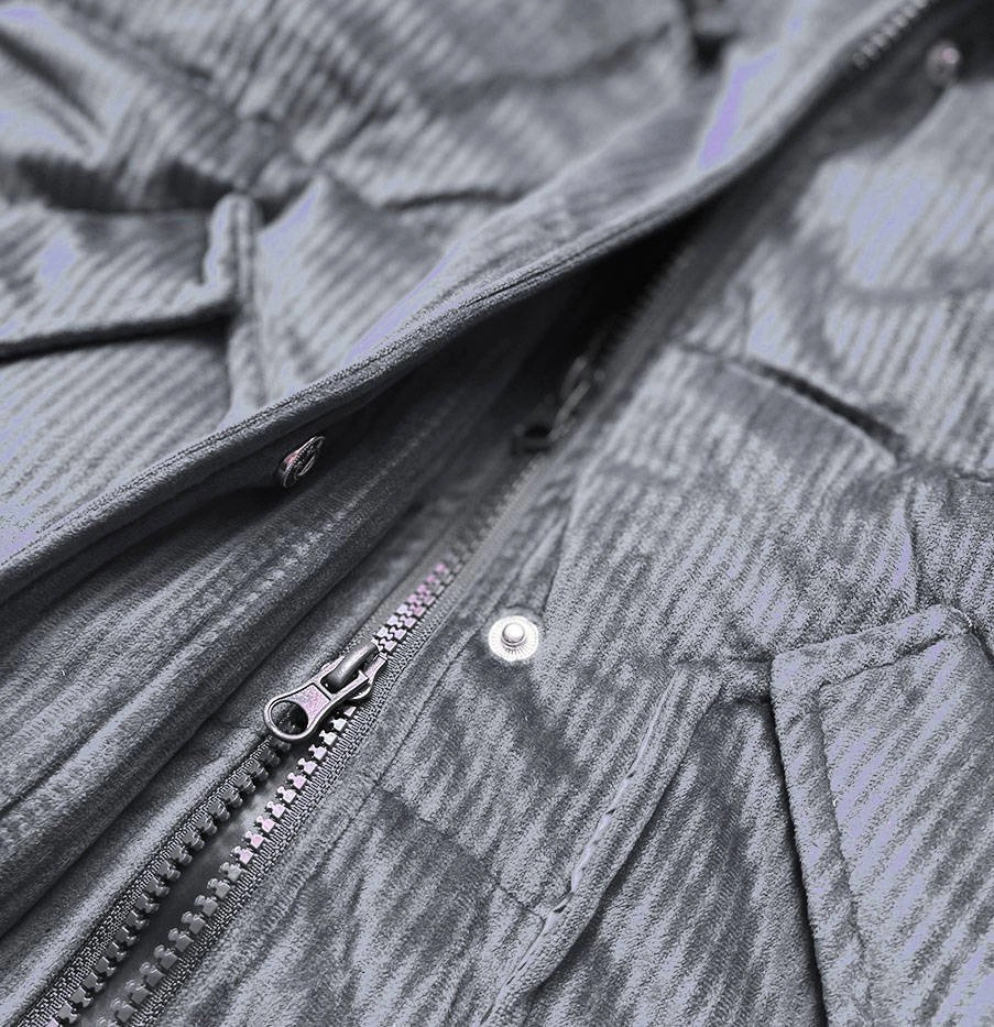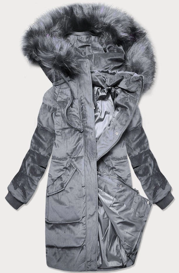 Sztruksowa zimowa kurtka damska z kapturem szara (7764)
