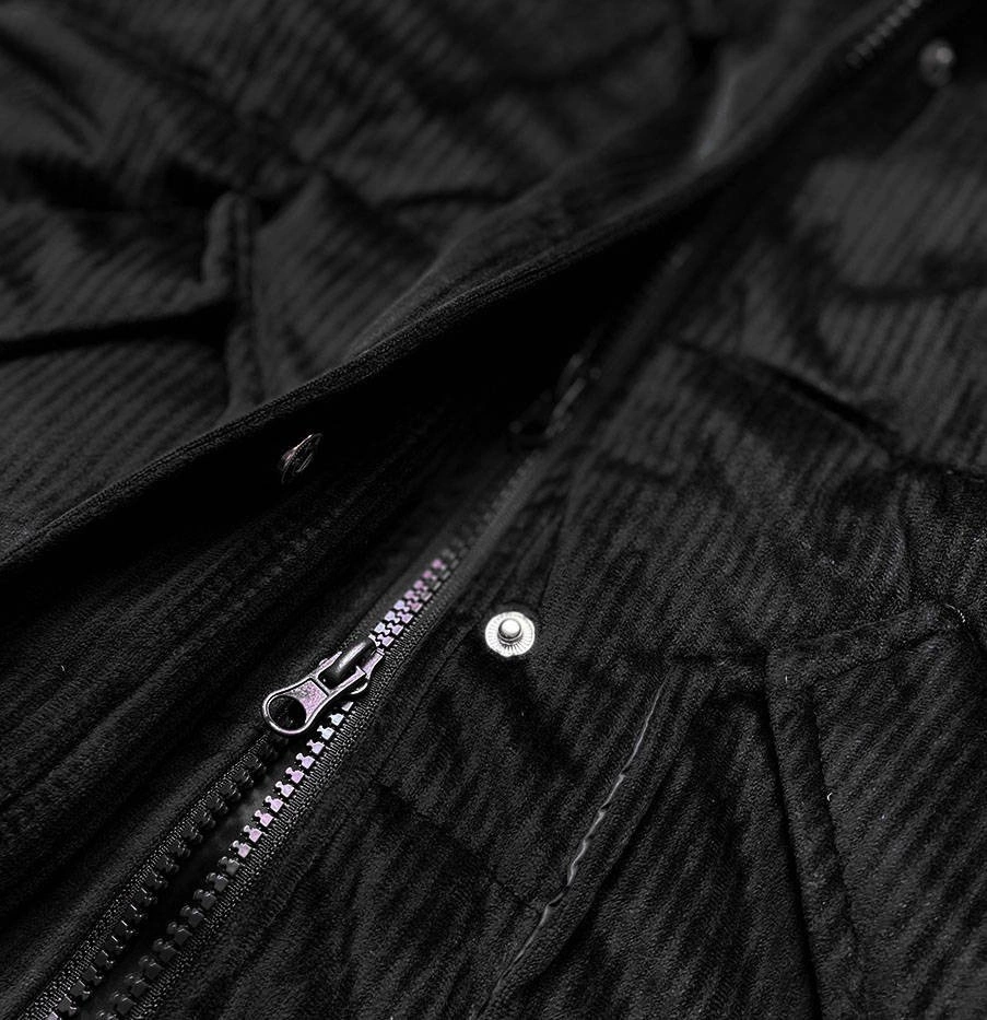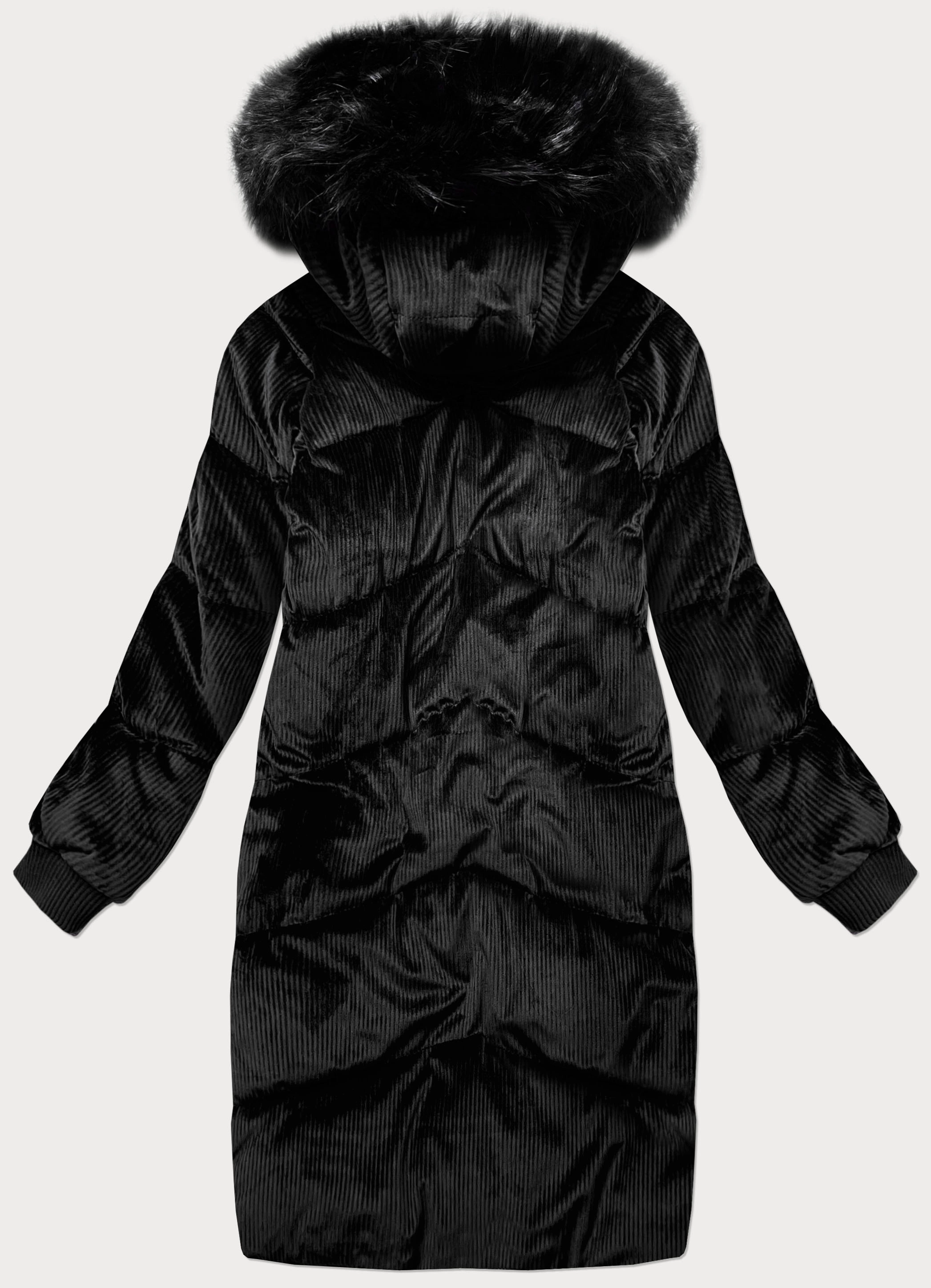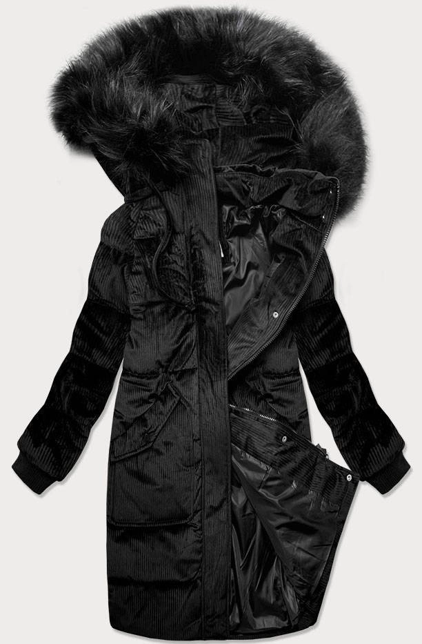 Sztruksowa zimowa kurtka damska z kapturem czarna (7764)