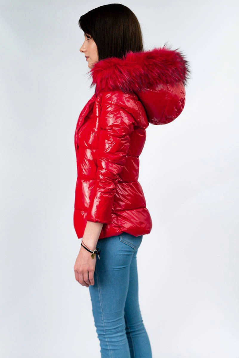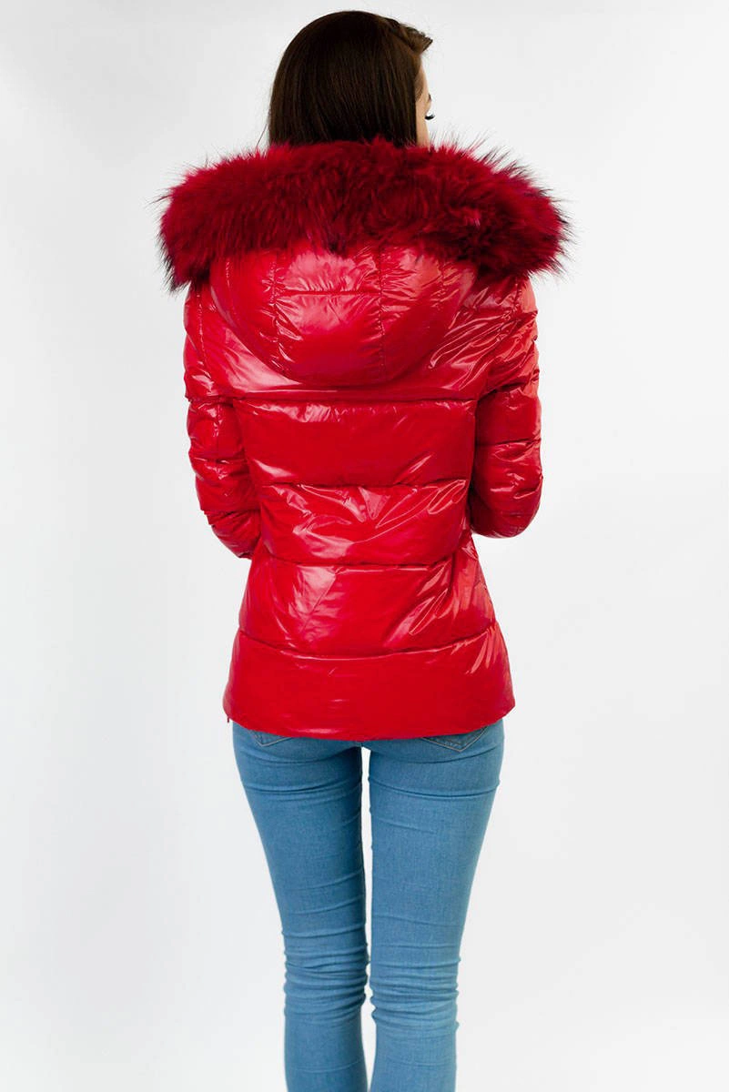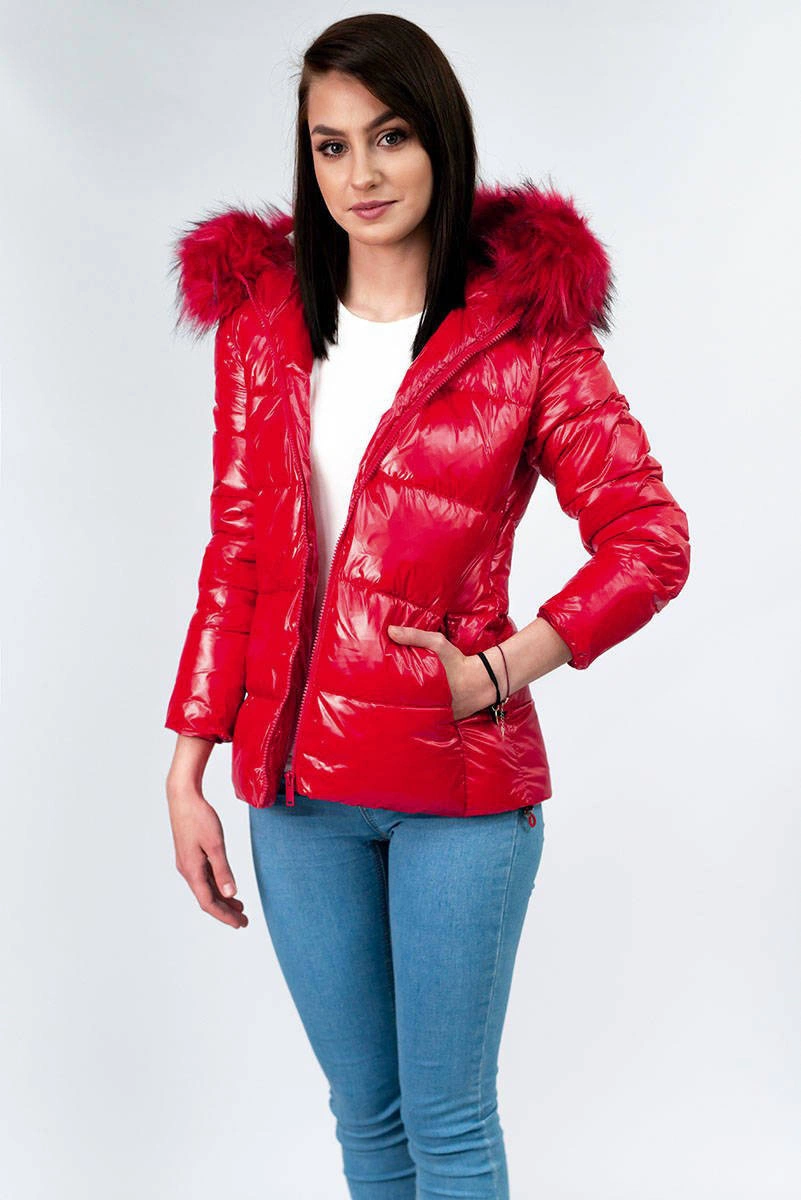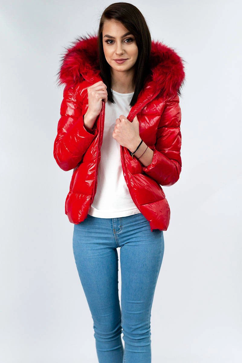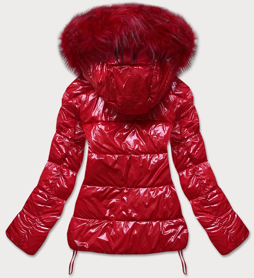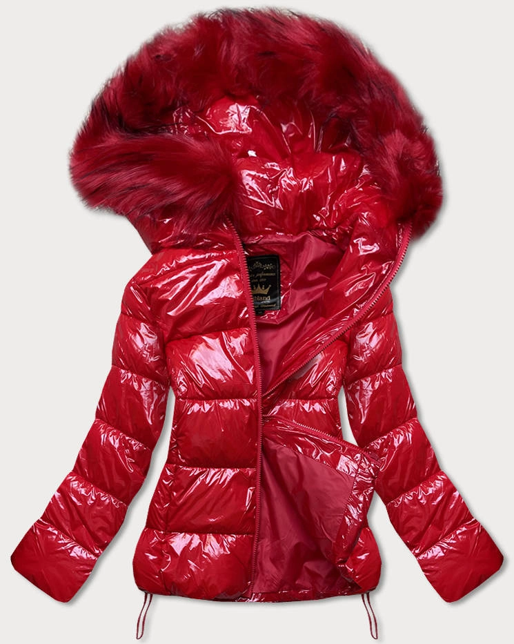 Lakierowana pikowana kurtka damska czerwona (7693)