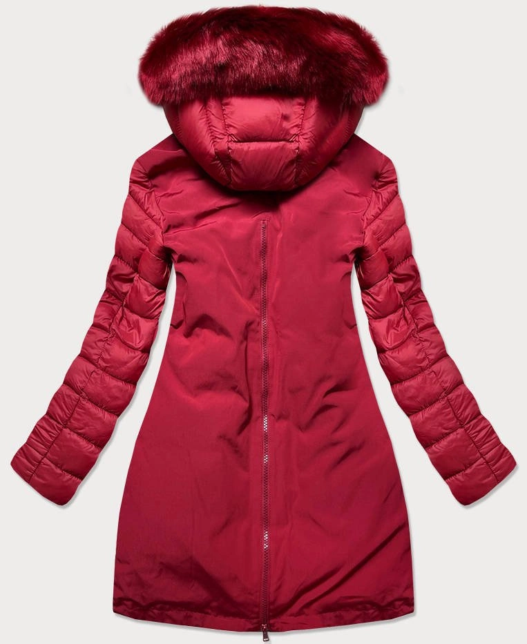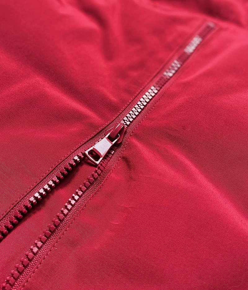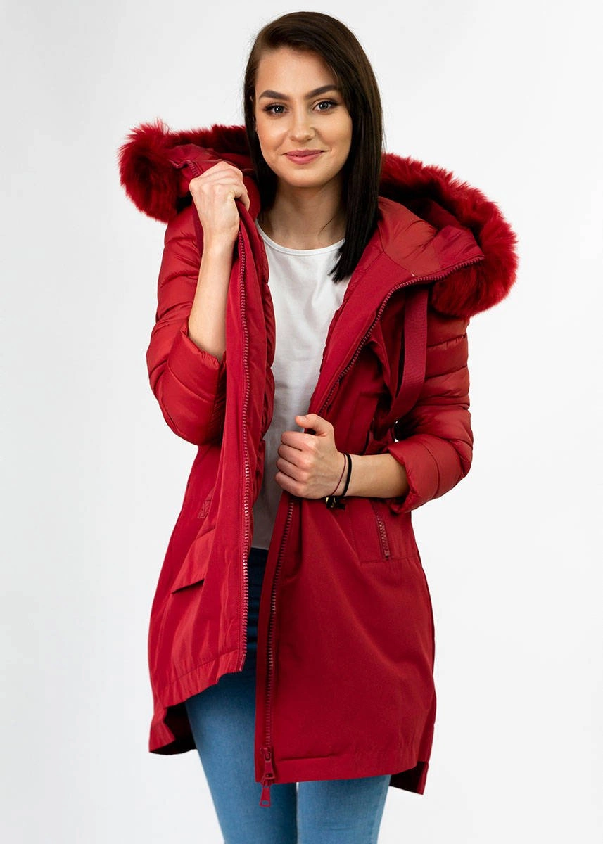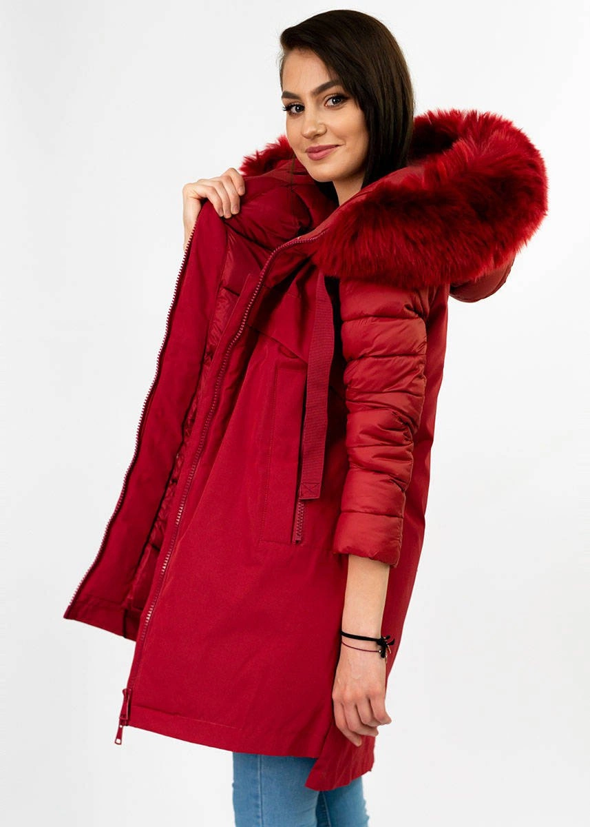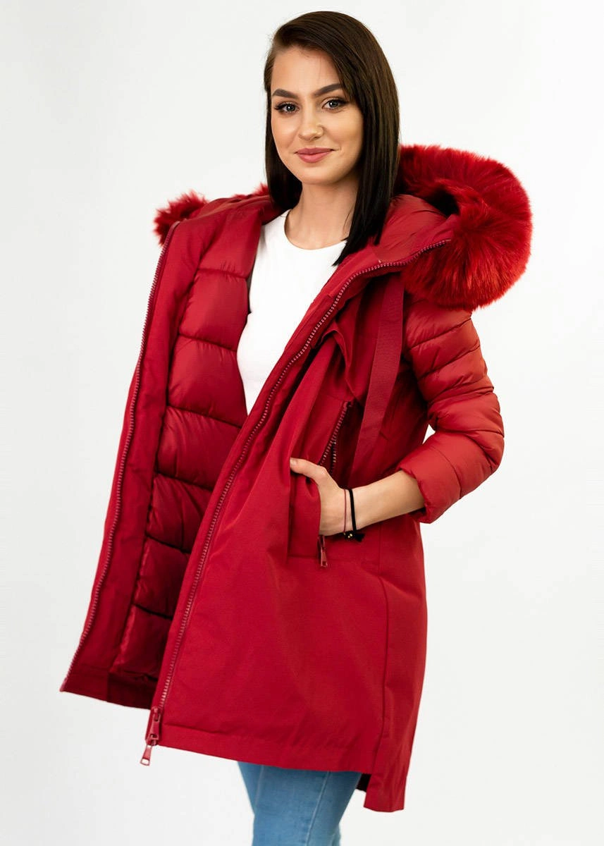 ZIMOWA KURTKA DAMSKA Z ŁĄCZONYCH MATERIAŁÓW CZERWONA (7708)