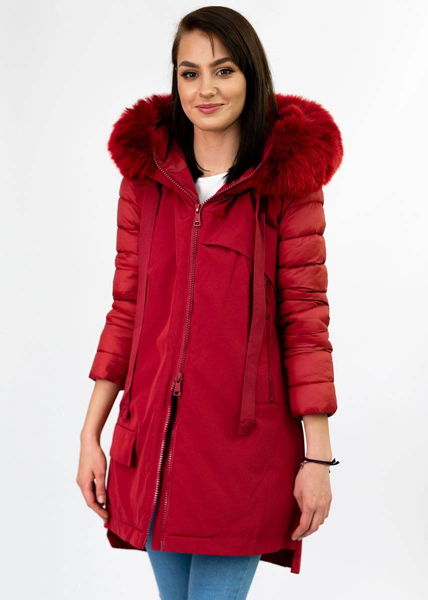 Opinie o ZIMOWA KURTKA DAMSKA Z ŁĄCZONYCH MATERIAŁÓW CZERWONA (7708)
