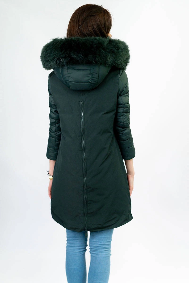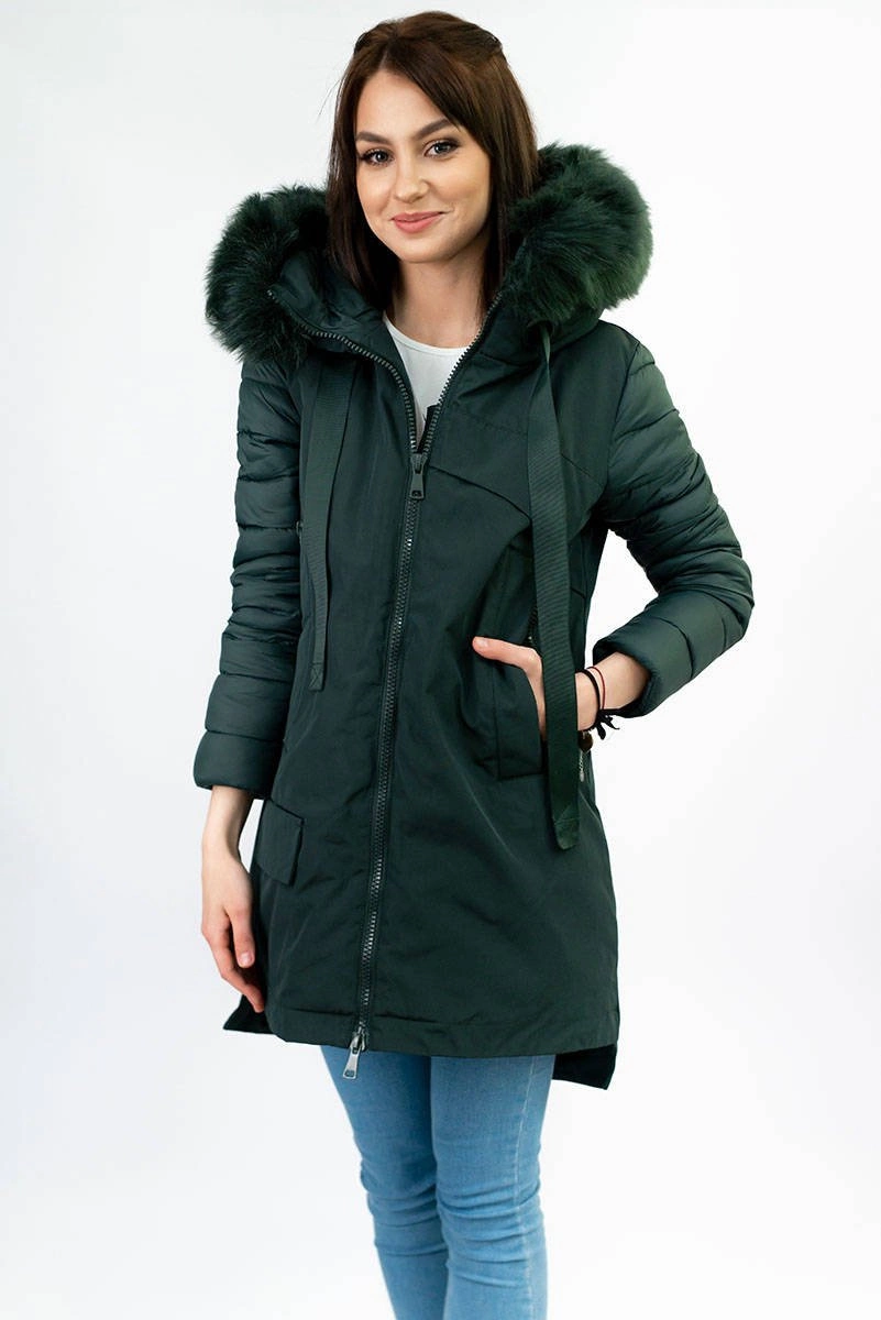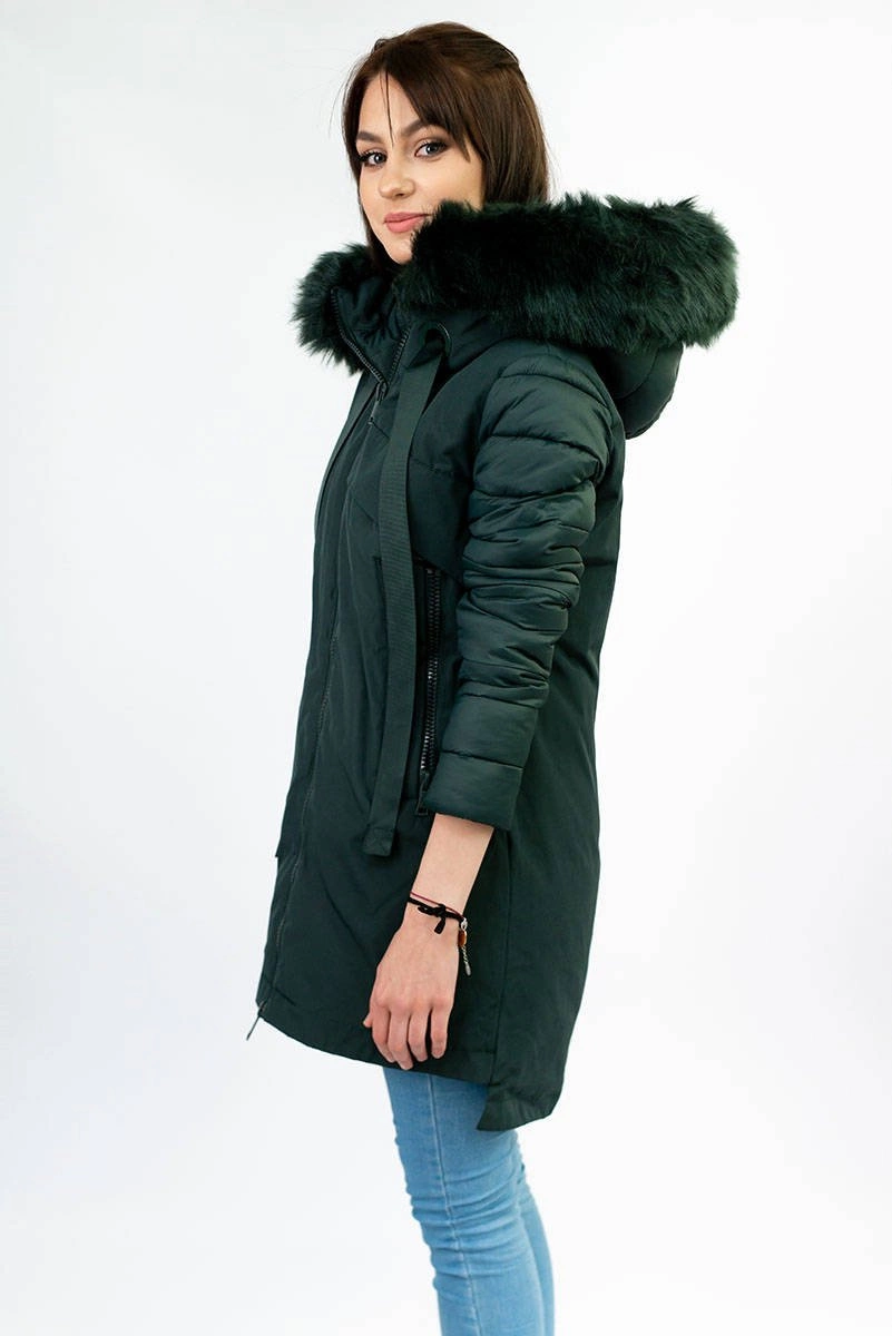Opinie o ZIMOWA KURTKA DAMSKA Z ŁĄCZONYCH MATERIAŁÓW CIEMNOZIELONA (7708)