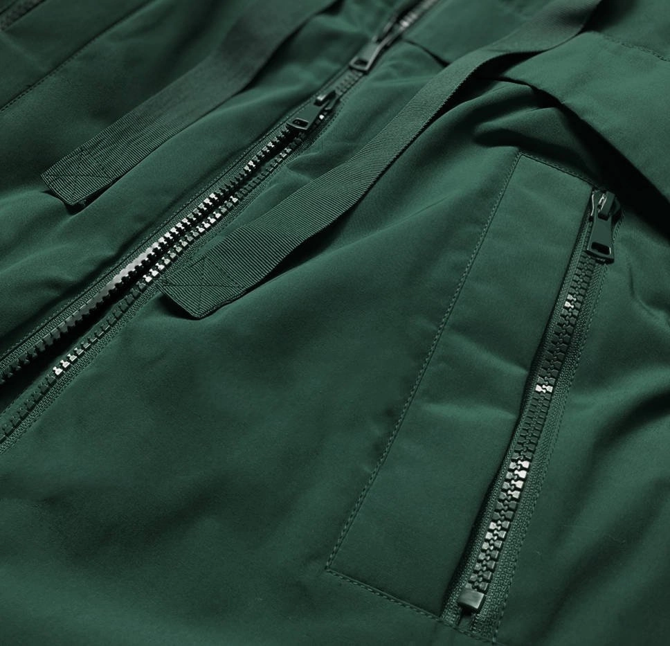 - Z tyłu kurtki jest zamek, który po rozpięciu poszerza kurtkę o kilka centymetrów