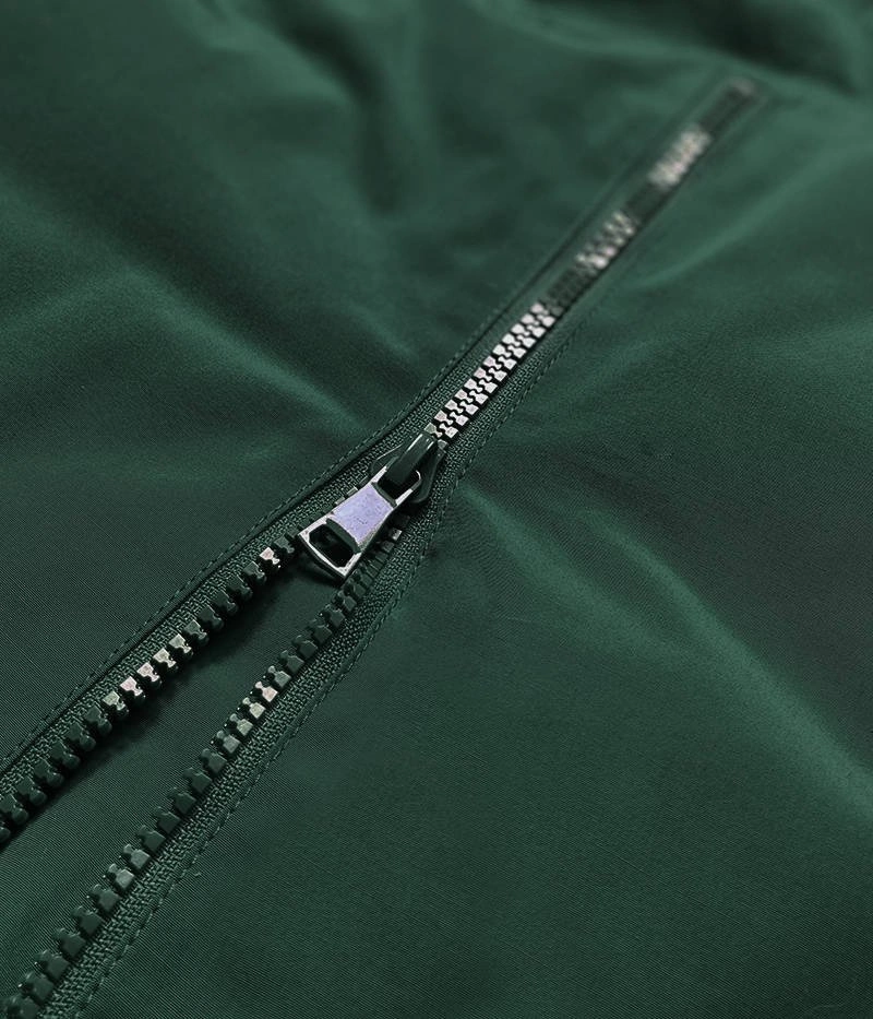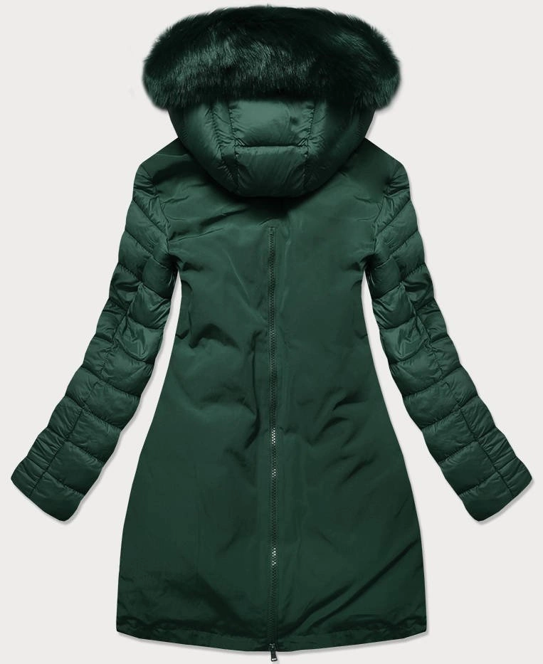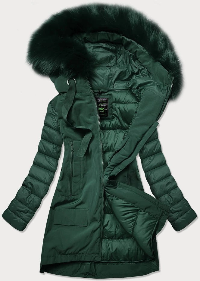 ZIMOWA KURTKA DAMSKA Z ŁĄCZONYCH MATERIAŁÓW CIEMNOZIELONA (7708)