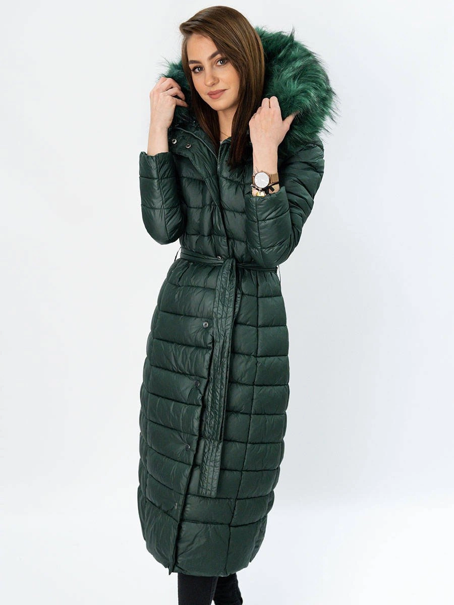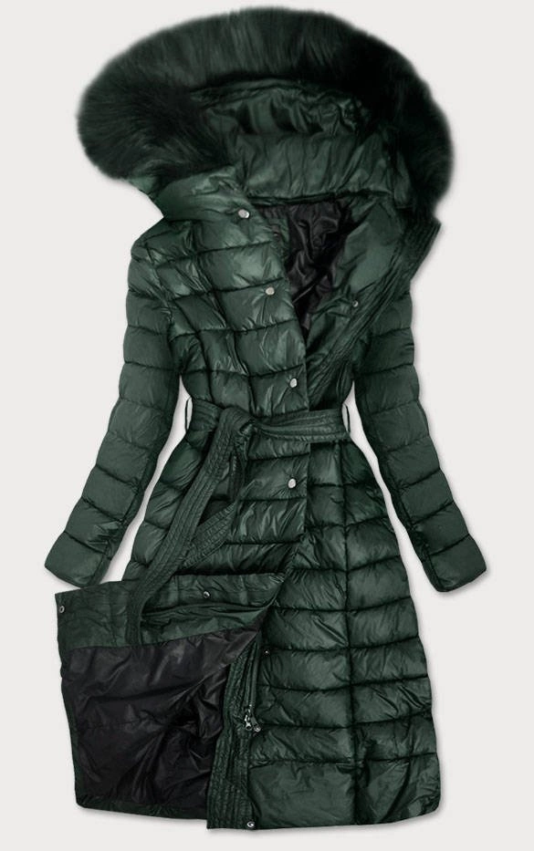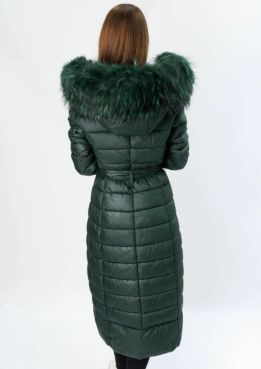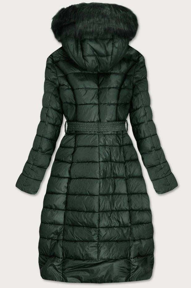 DŁUGA PIKOWANA KURTKA CIEMNOZIELONA (7761)
