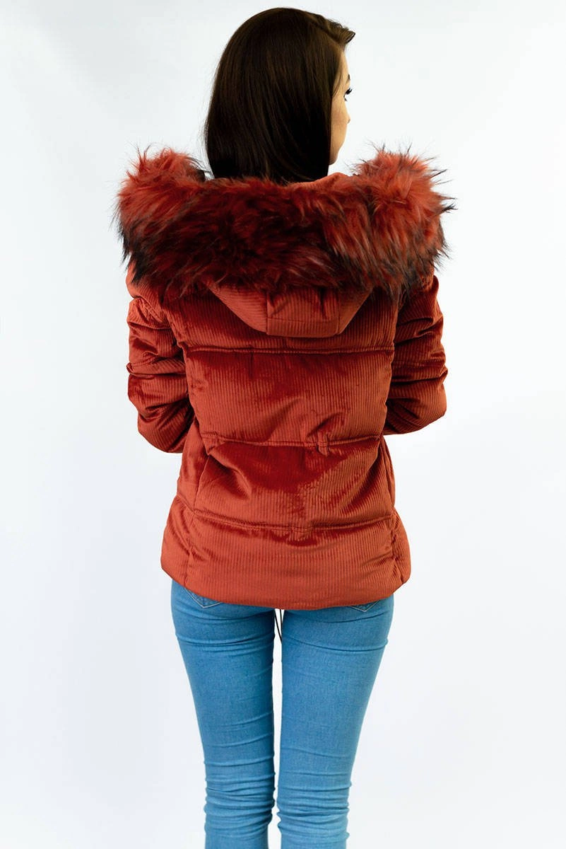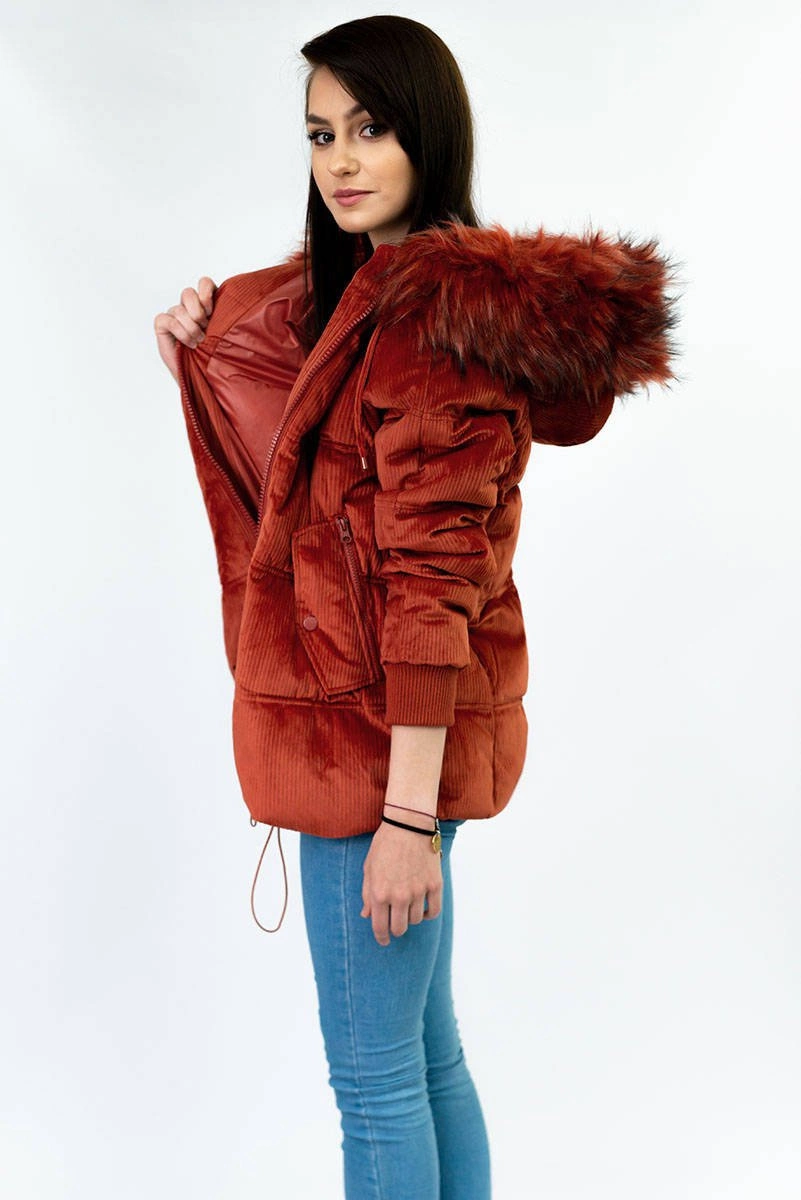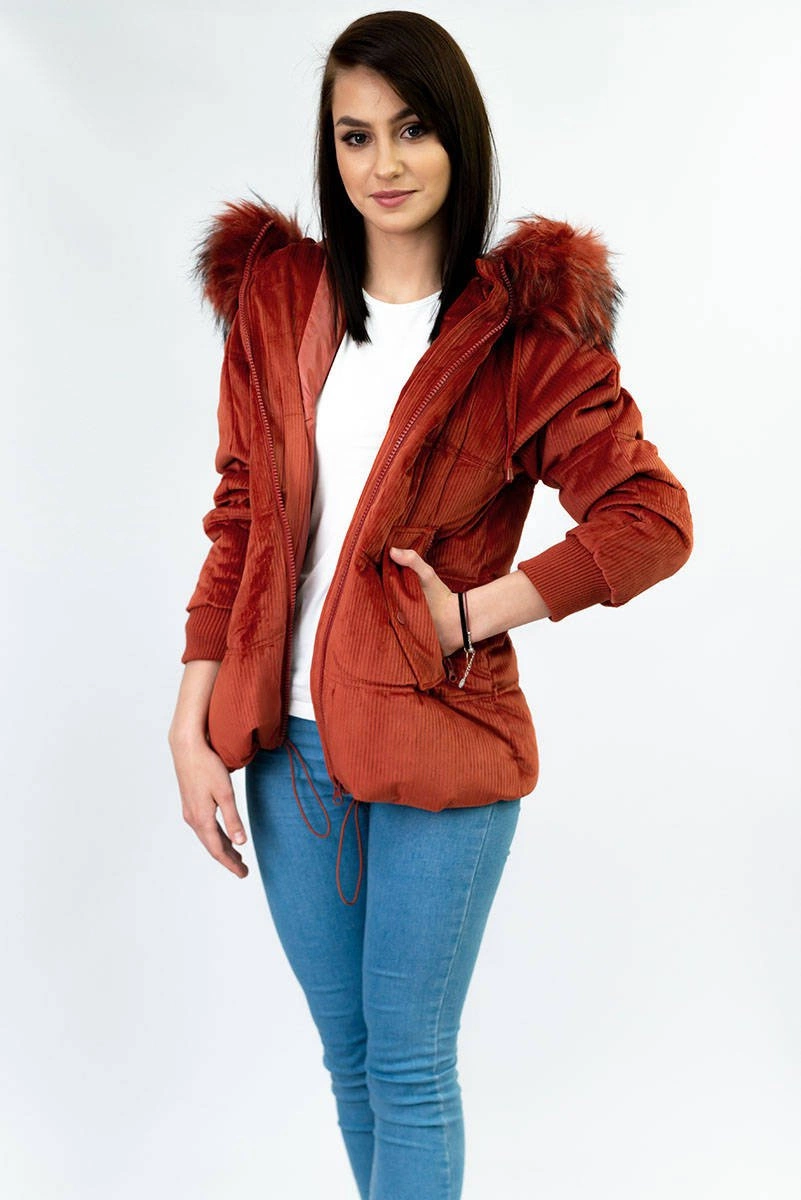 Sztruksowa damska kurtka z kapturem ruda (7696)