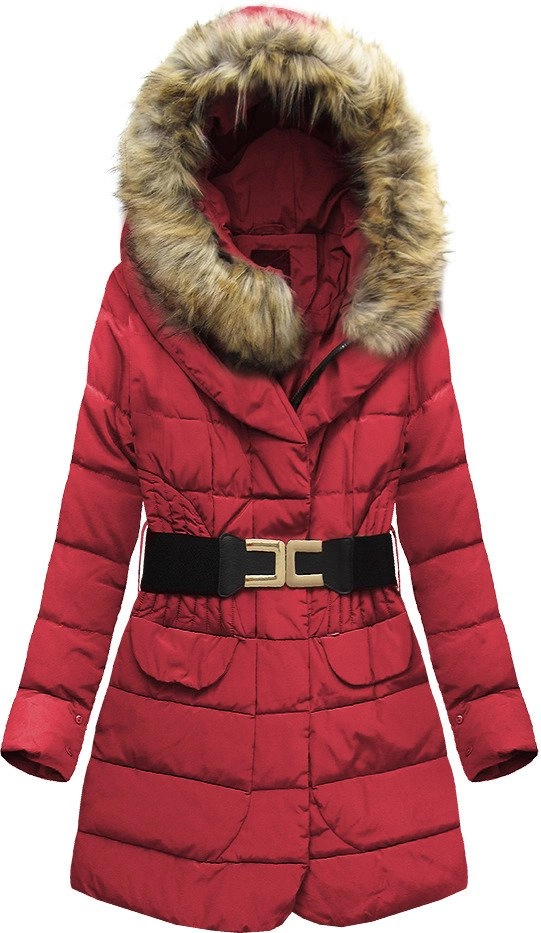 PIKOWANA KURTKA Z PUCHEM NATURALNYM CZERWONA (X1212X)