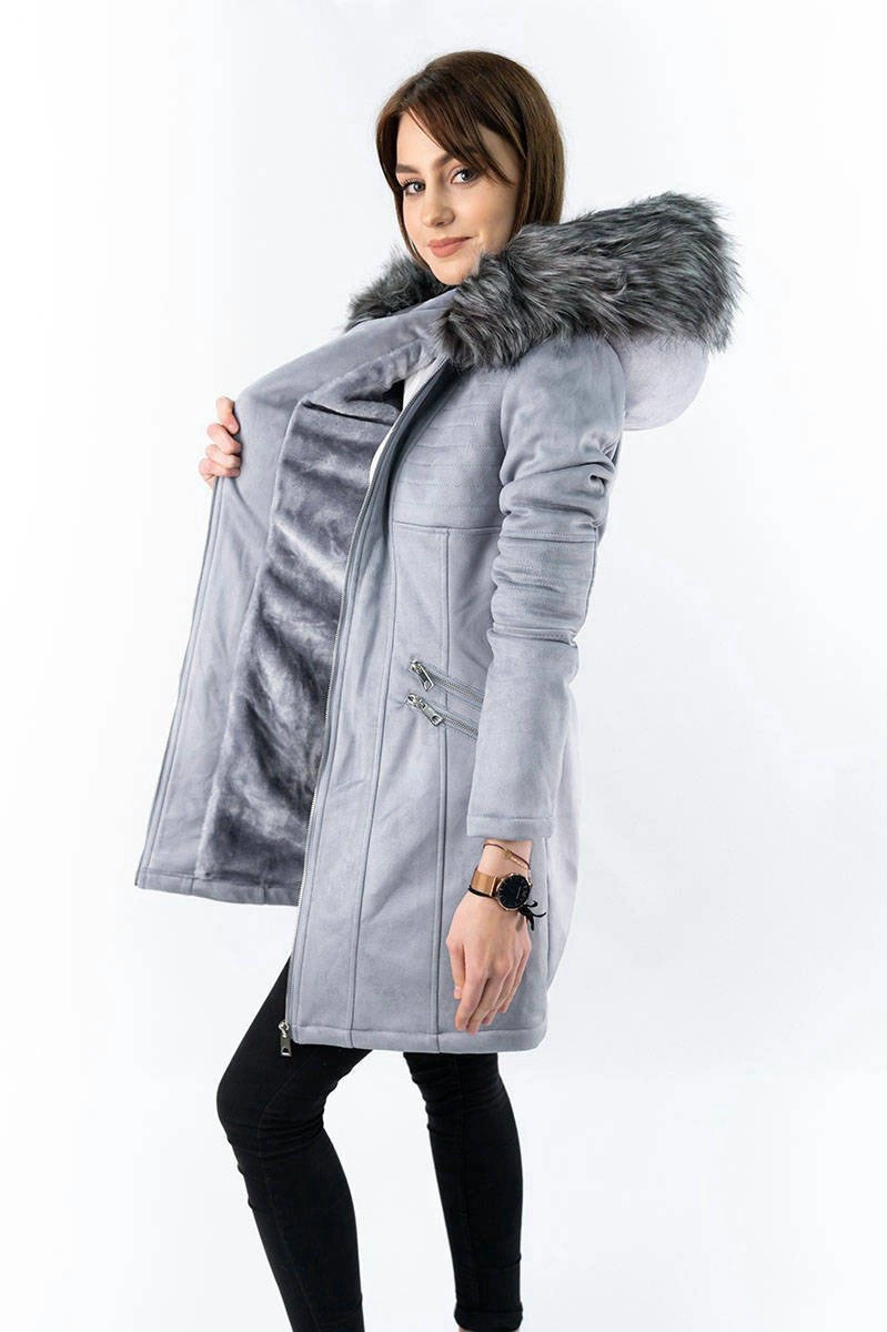 Opinie o ZAMSZOWA DAMSKA KURTKA ZIMOWA Z KAPTUREM WRZOSOWA (6516)