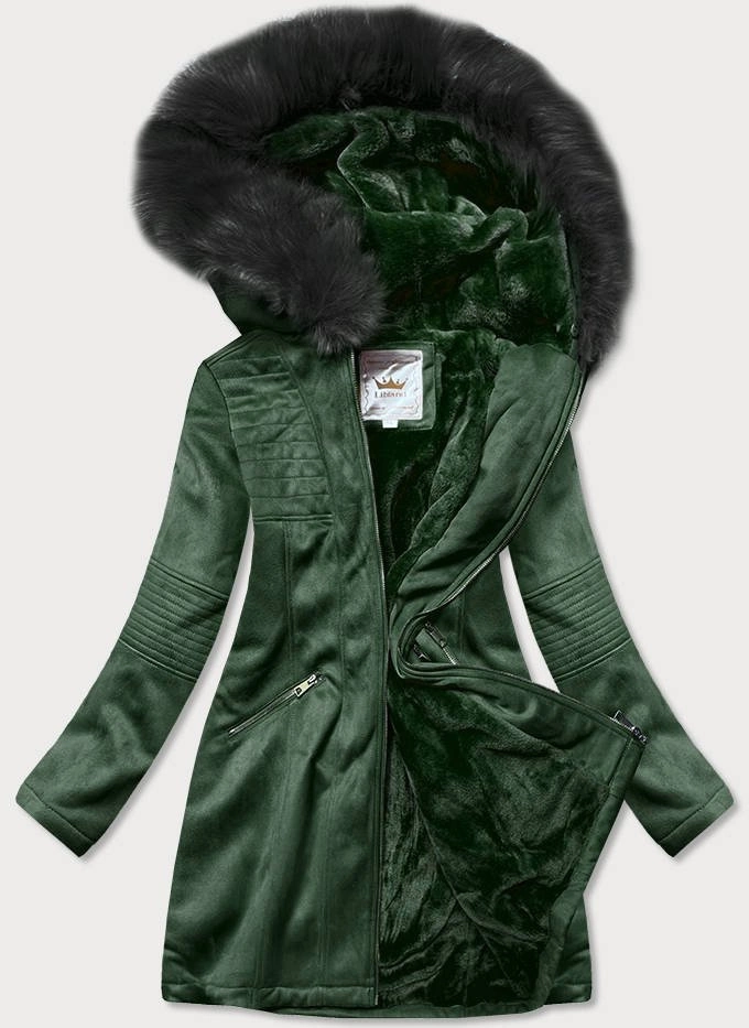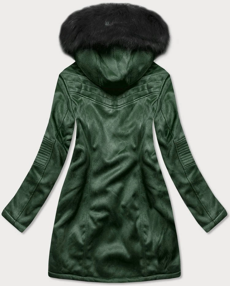 ZAMSZOWA DAMSKA KURTKA ZIMOWA Z KAPTUREM BUTELKOWA ZIELEŃ (6516BIG)