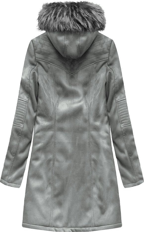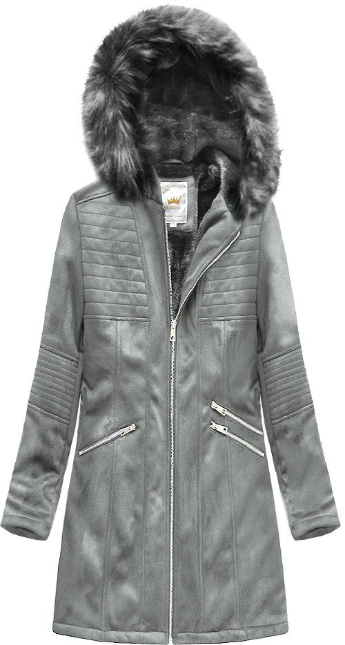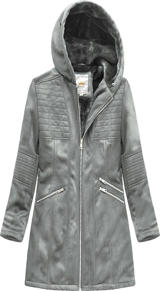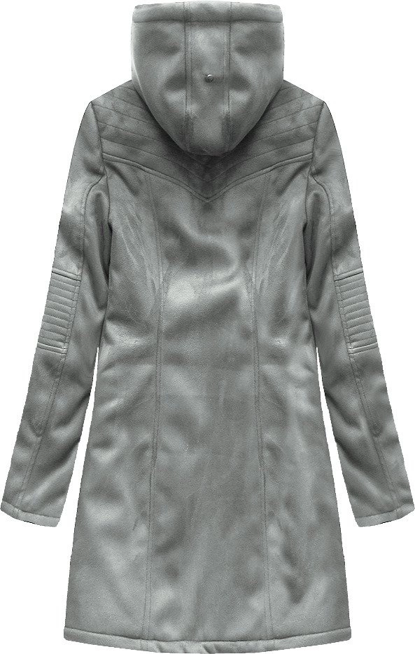 ZAMSZOWA DAMSKA KURTKA ZIMOWA Z KAPTUREM SZARA (6516BIG)