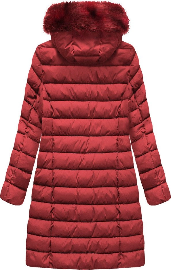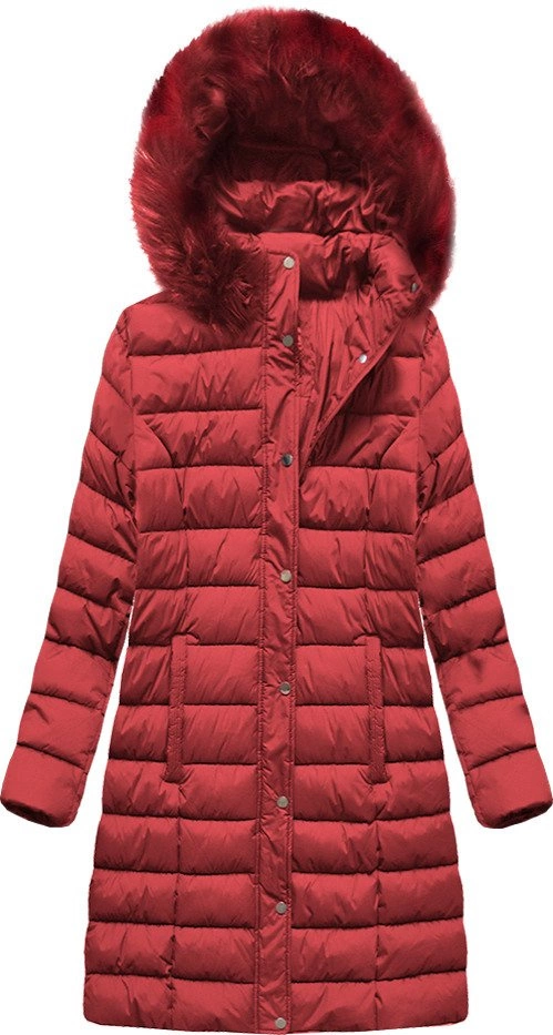 PIKOWANA ZIMOWA KURTKA DAMSKA Z KAPTUREM CZERWONA (7793PLUS)