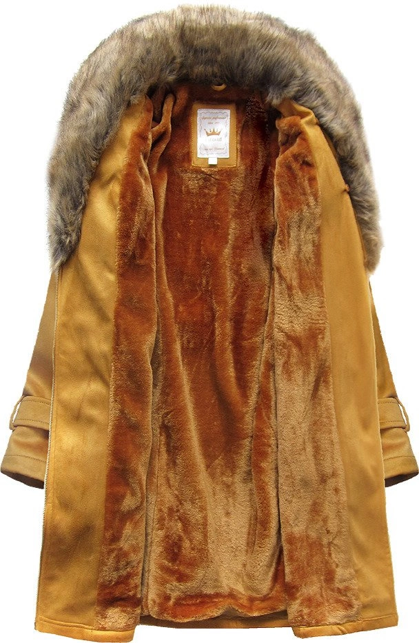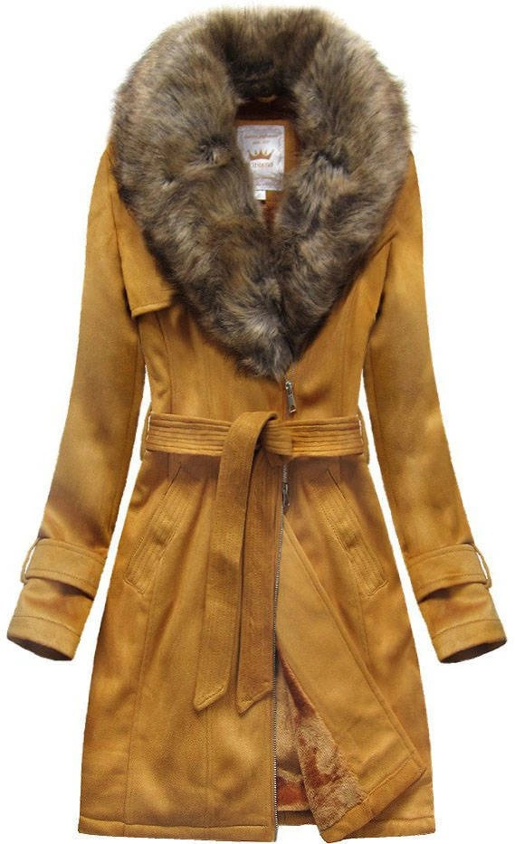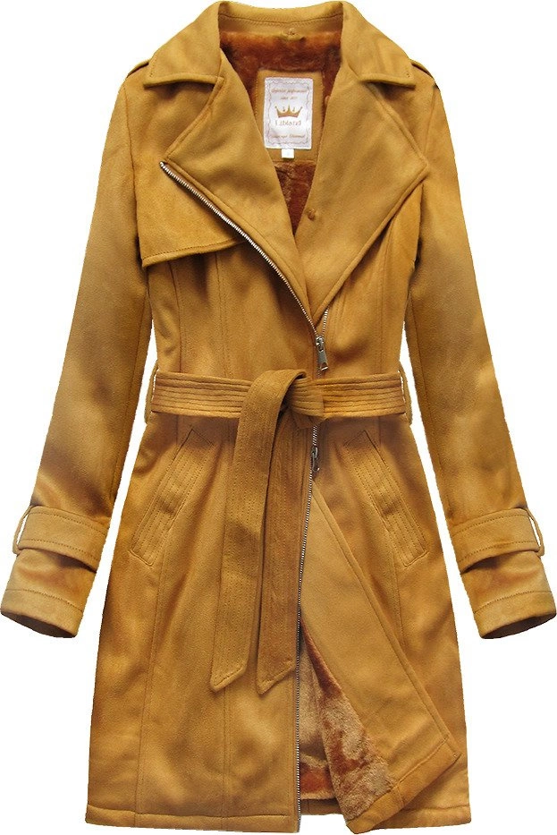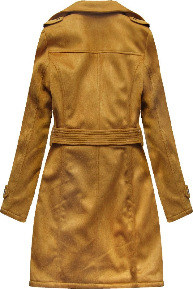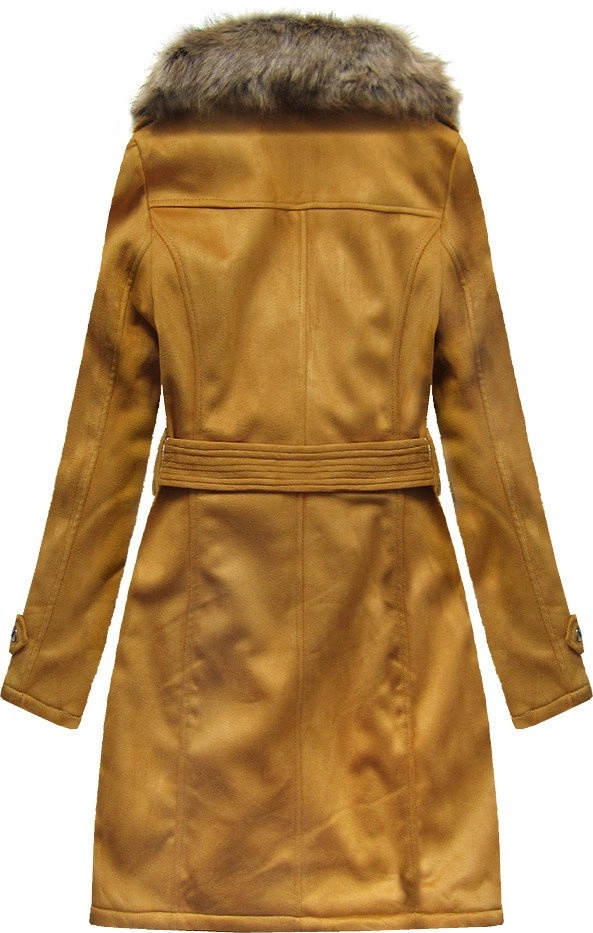 ZAMSZOWY DAMSKI PŁASZCZ ZIMOWY Z PASKIEM MUSZTARDOWY (6515)
