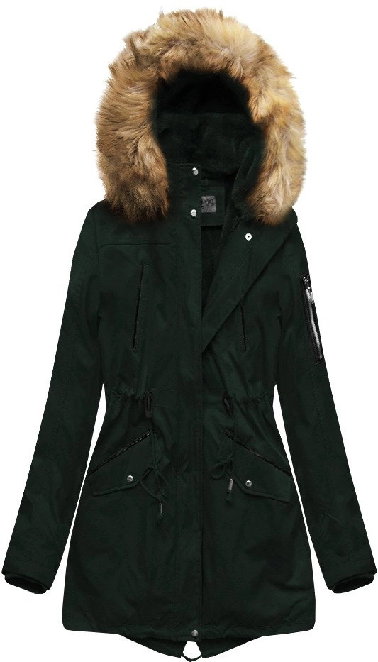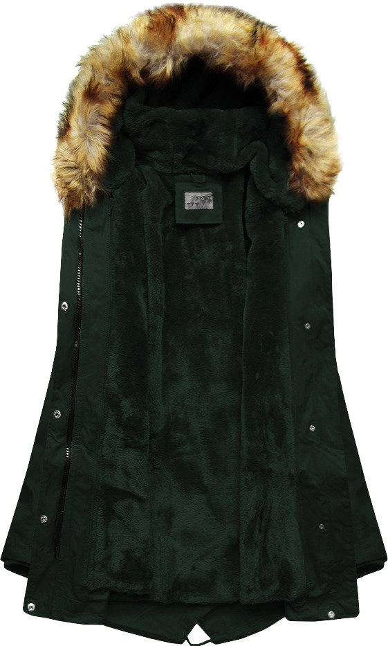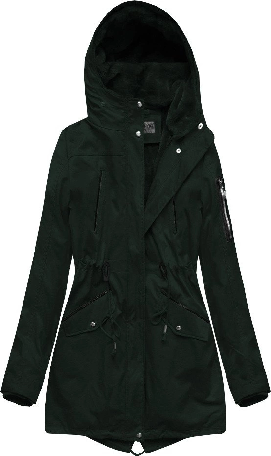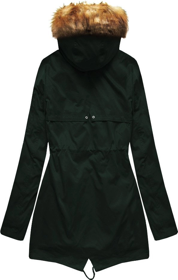 ZIMOWA DAMSKA PARKA Z PODPINKĄ CIEMNOZIELONA (B2635)