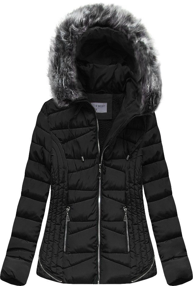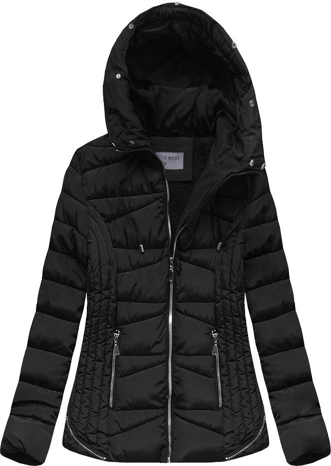 PIKOWANA KURTKA Z KAPTUREM CZARNA (B2631)