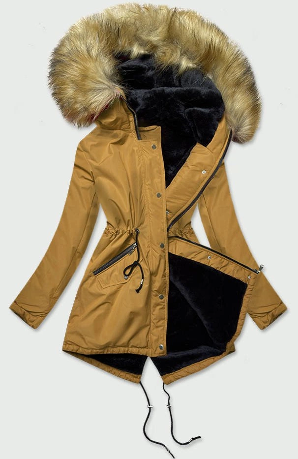 Opinie o Zimowa kurtka damska typu parka musztardowa (b2628)