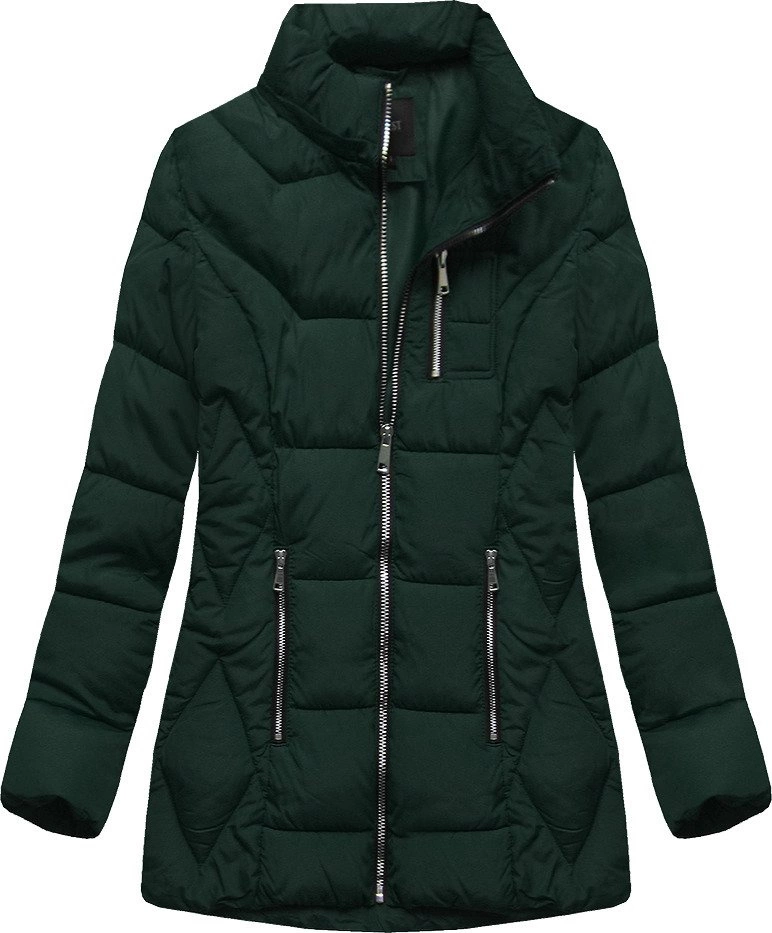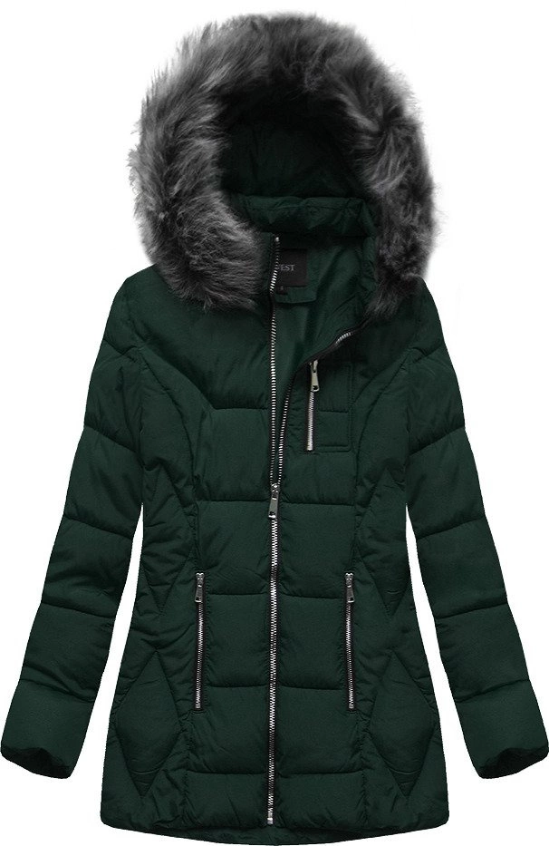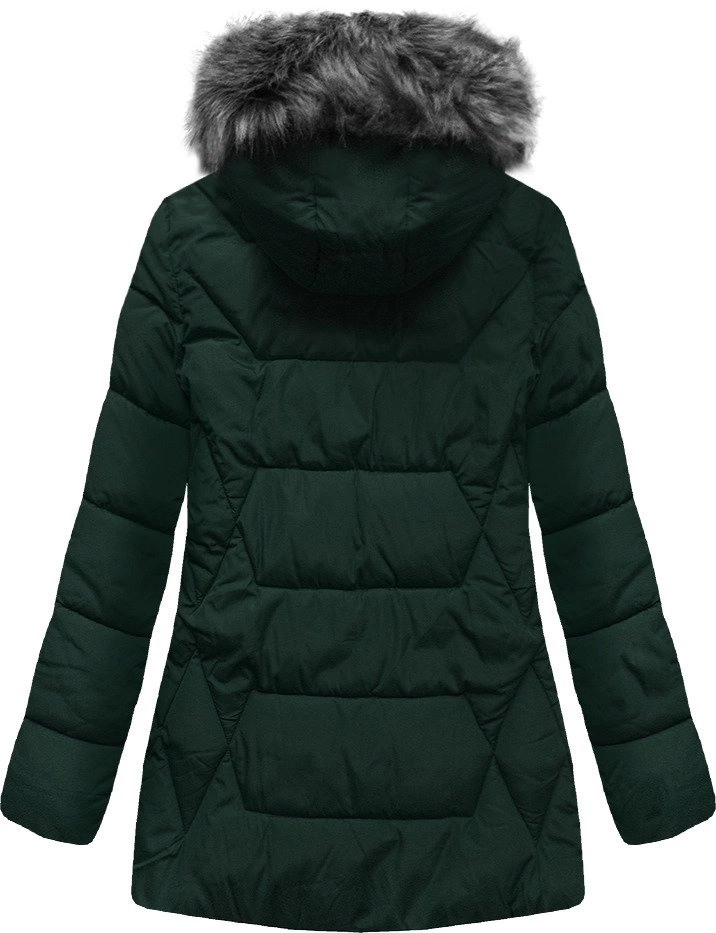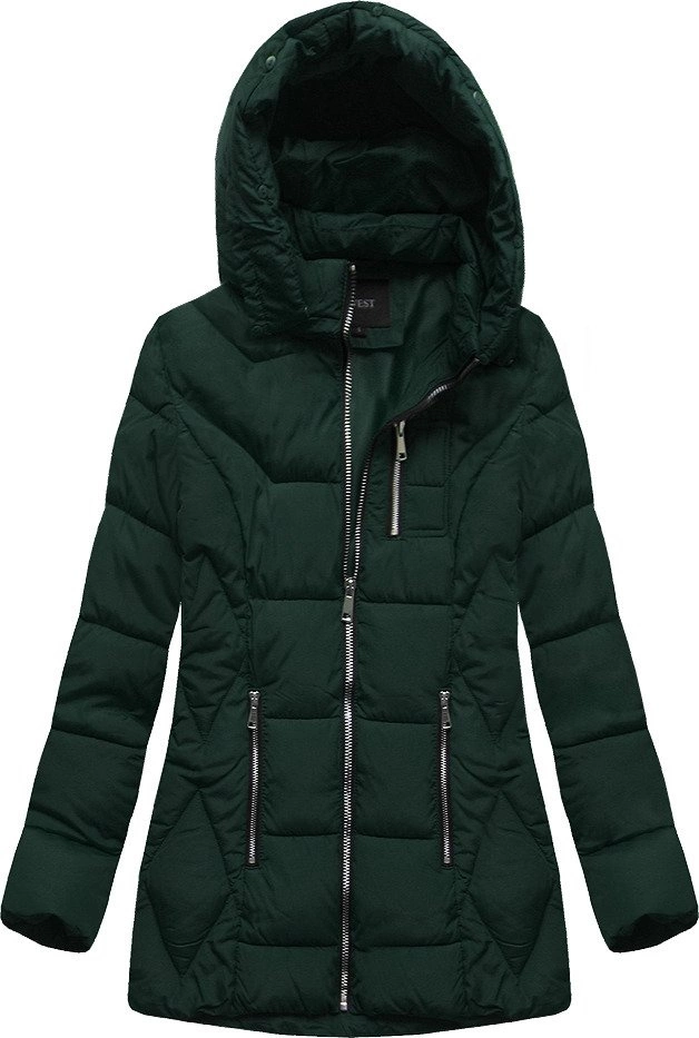 PIKOWANA KURTKA Z KAPTUREM CIEMNOZIELONA (B9901)