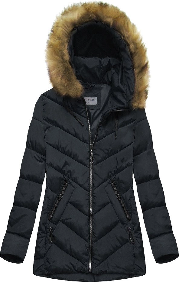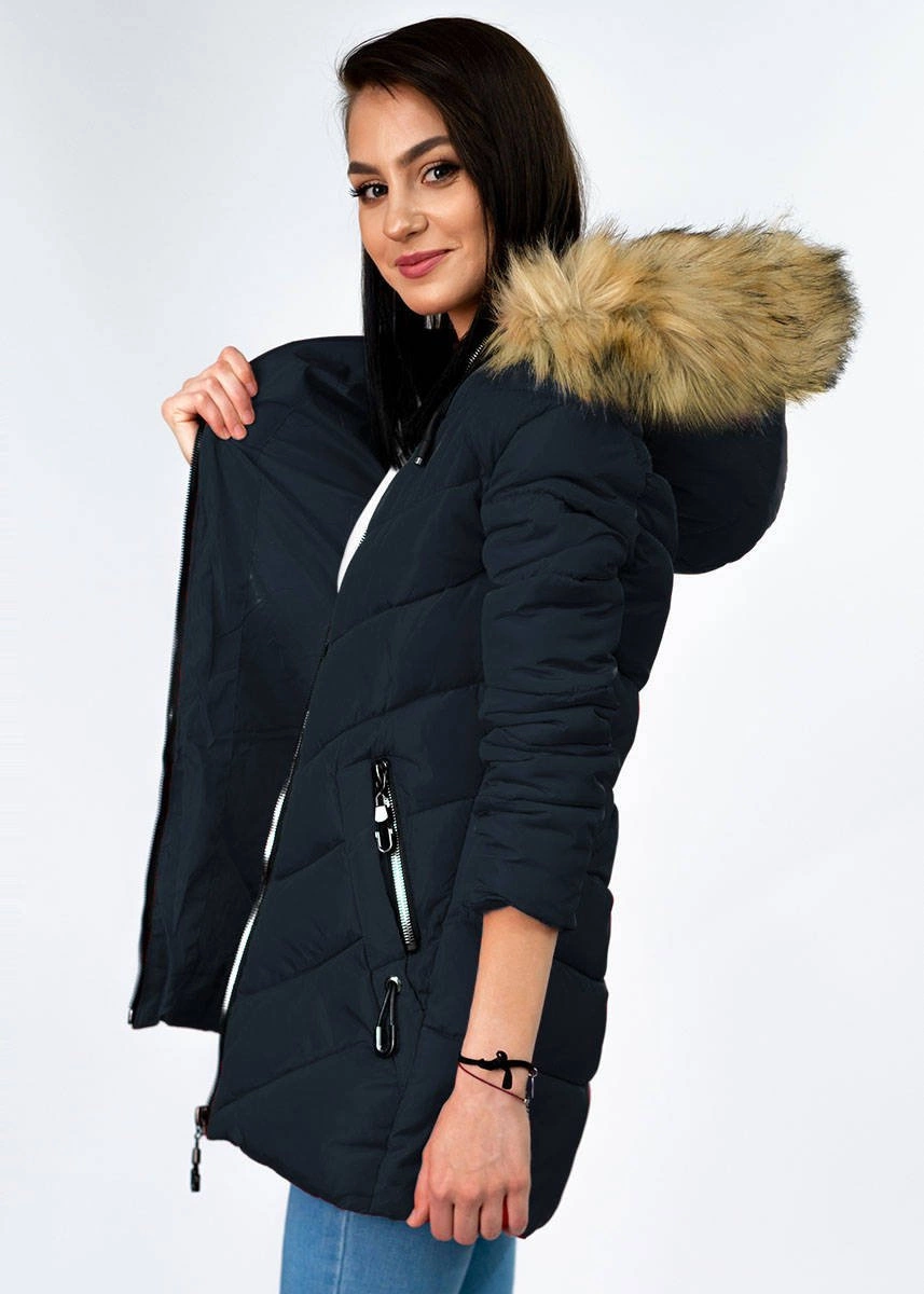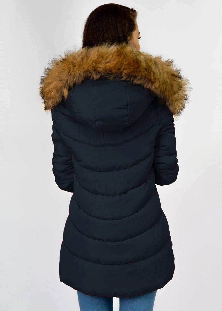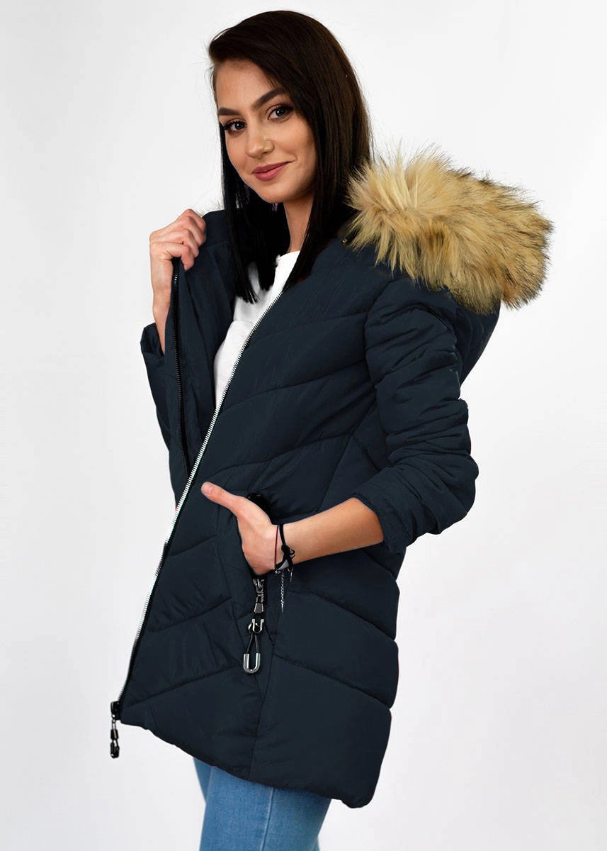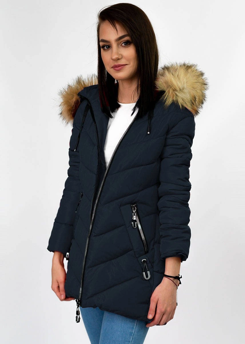 ZIMOWA PIKOWANA KURTKA DAMSKA Z KAPTUREM GRANATOWA (B2633)