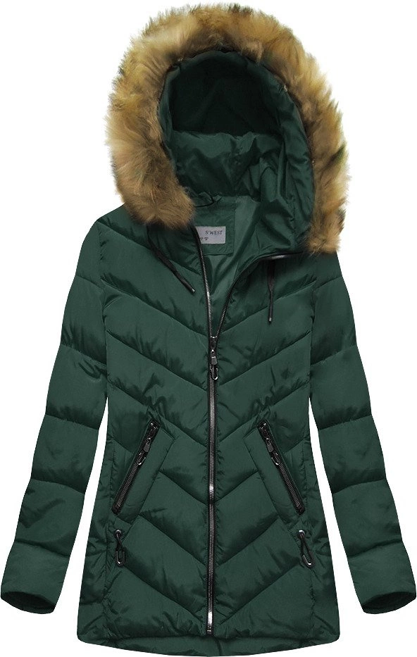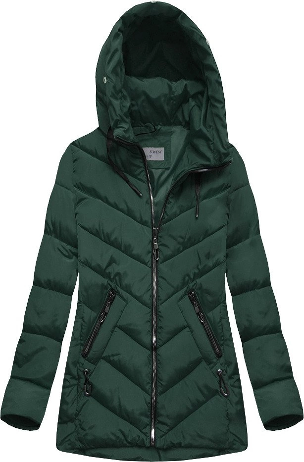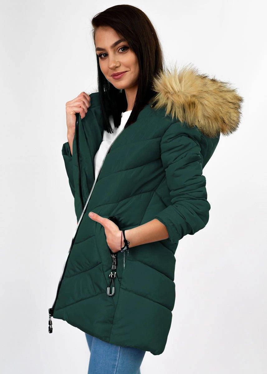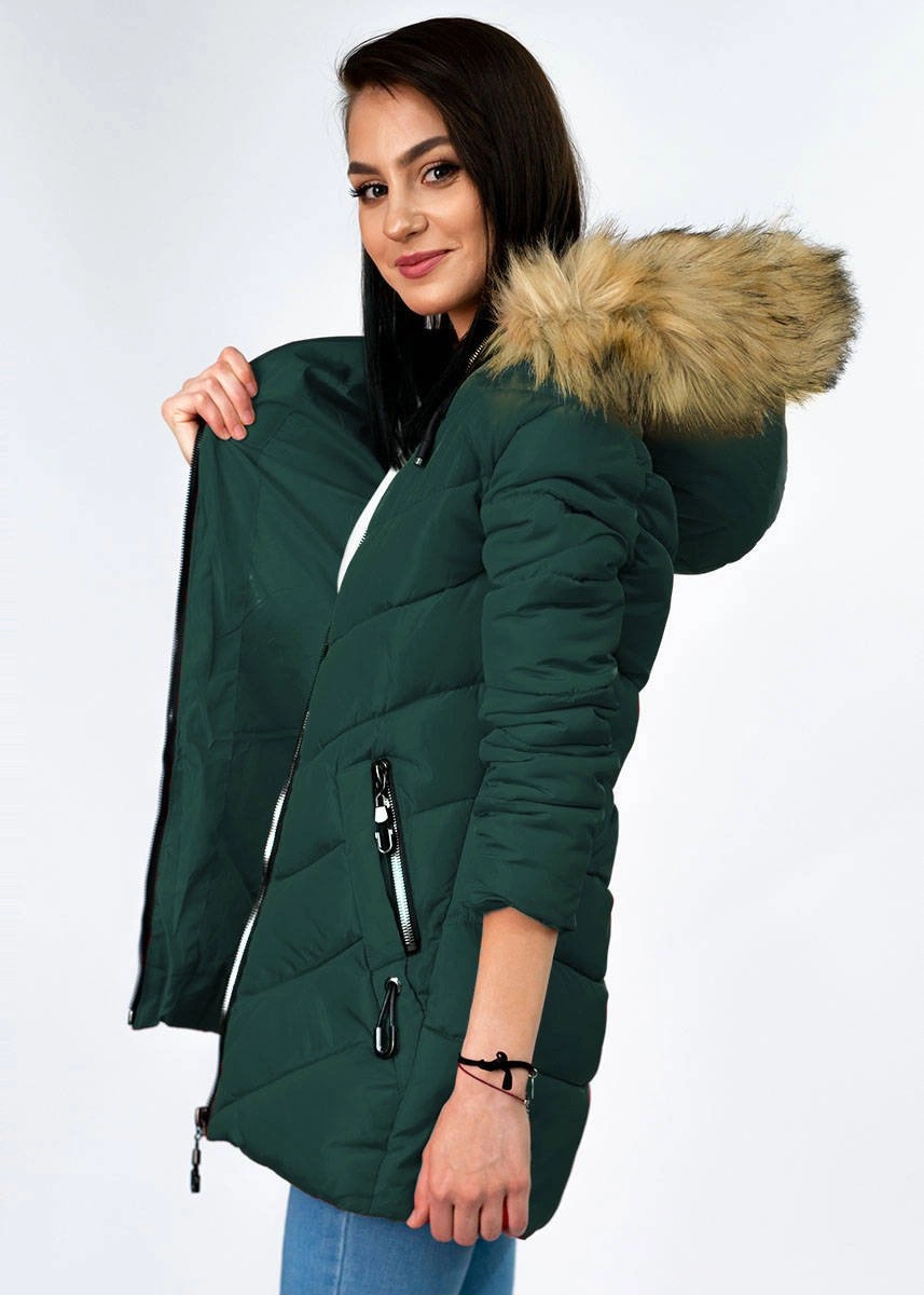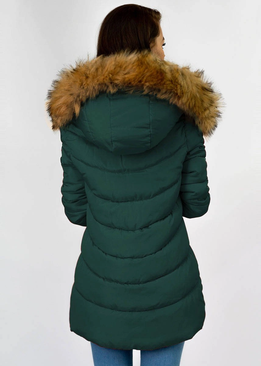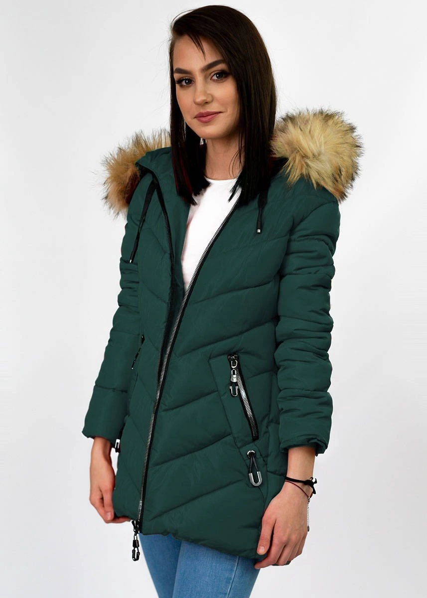 Opinie o ZIMOWA PIKOWANA KURTKA DAMSKA Z KAPTUREM CIEMNOZIELONA (B2633)