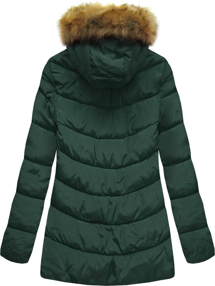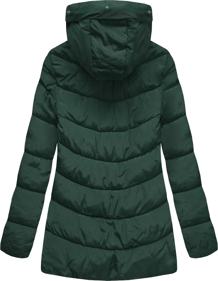 ZIMOWA PIKOWANA KURTKA DAMSKA Z KAPTUREM CIEMNOZIELONA (B2633)