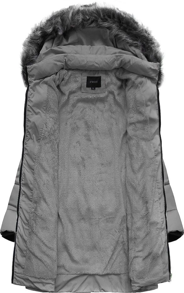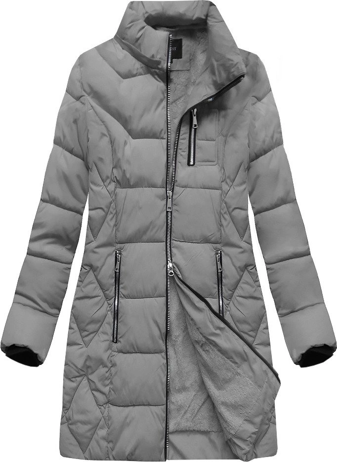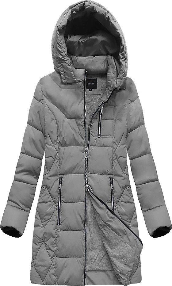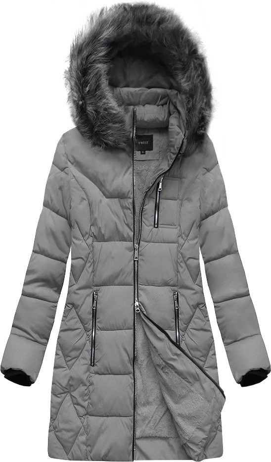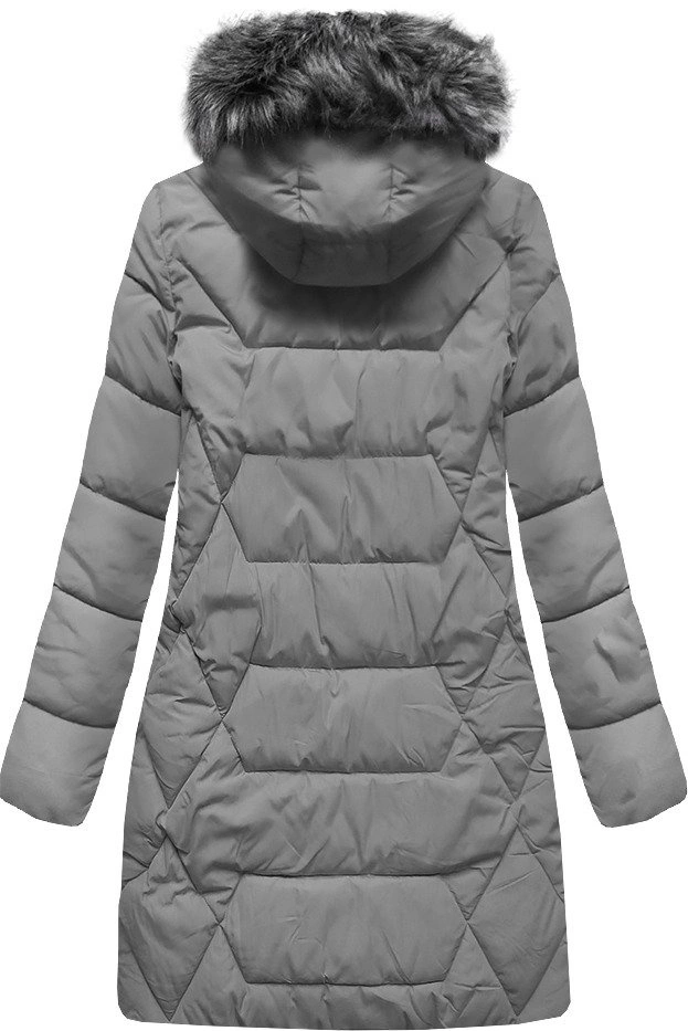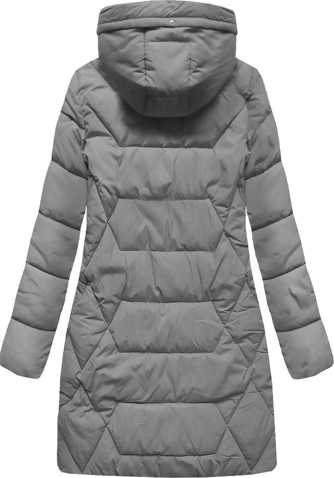 DŁUŻSZA ZIMOWA KURTKA DAMSKA Z KAPTUREM SZARA (B9902)