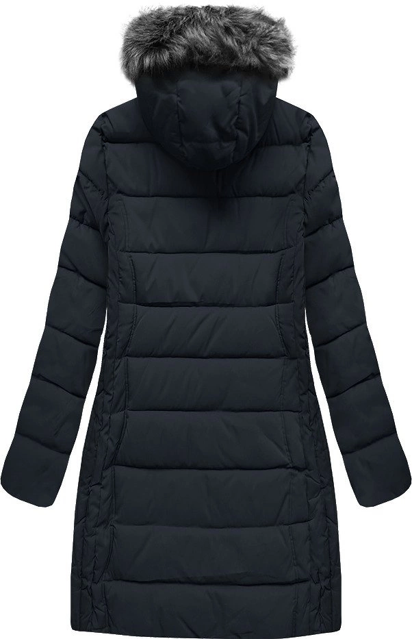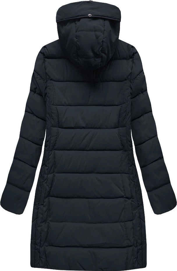 DŁUŻSZA PIKOWANA DAMSKA KURTKA ZIMOWA Z KAPTUREM GRANATOWA (B9502)
