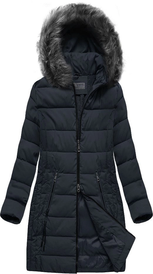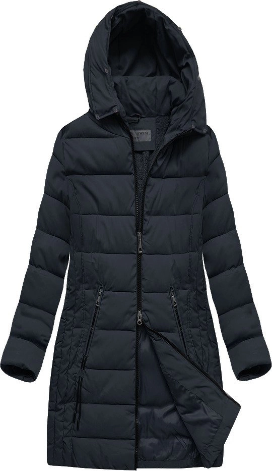 Opinie o DŁUŻSZA PIKOWANA DAMSKA KURTKA ZIMOWA Z KAPTUREM GRANATOWA (B9502)