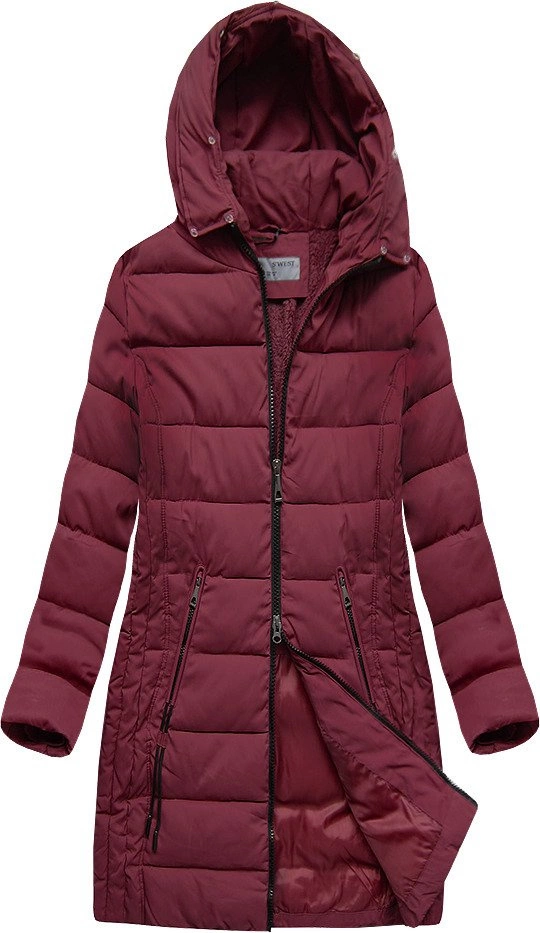 Opinie o DŁUŻSZA PIKOWANA DAMSKA KURTKA ZIMOWA Z KAPTUREM BORDOWA (B9502)