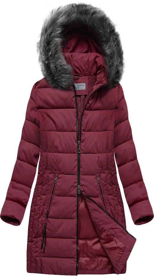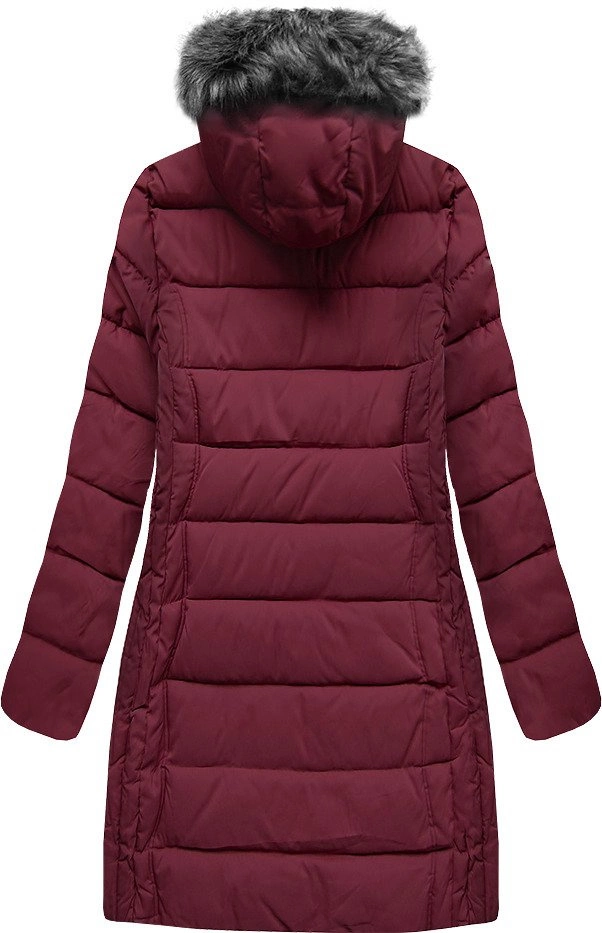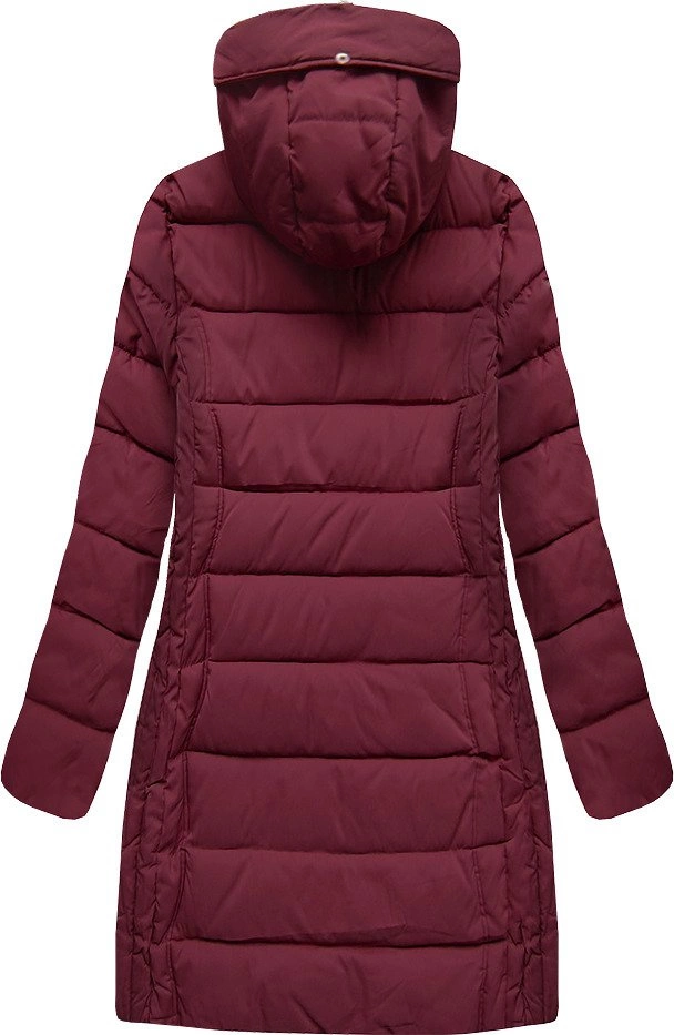 DŁUŻSZA PIKOWANA DAMSKA KURTKA ZIMOWA Z KAPTUREM BORDOWA (B9502)