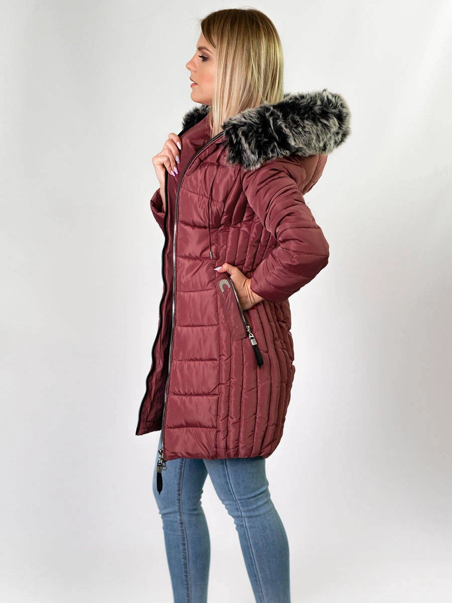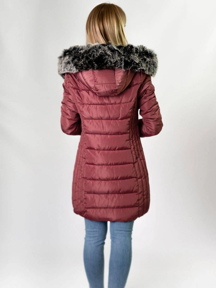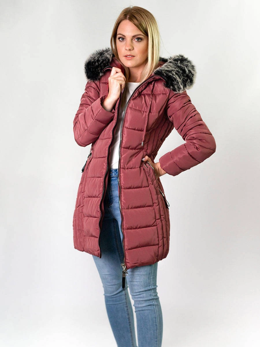 DŁUŻSZA PIKOWANA DAMSKA KURTKA ZIMOWA Z KAPTUREM RÓŻOWA (B2619-30)