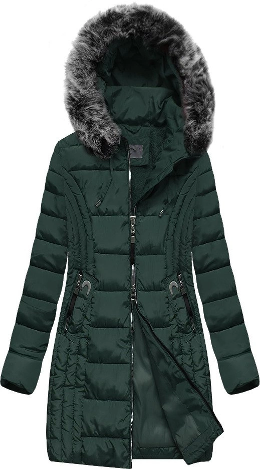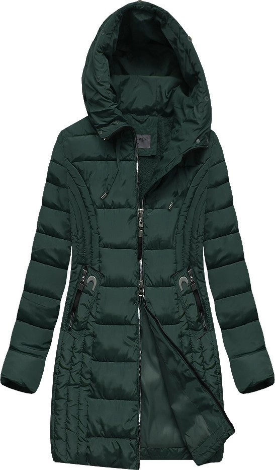 DŁUŻSZA KURTKA Z KAPTUREM BUTELKOWA ZIELEŃ (B2619-30)