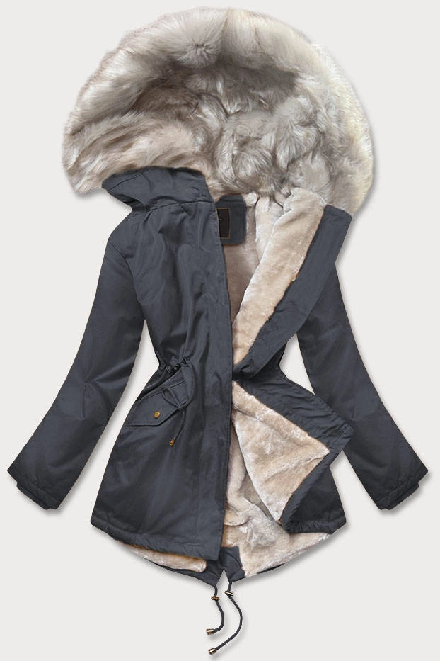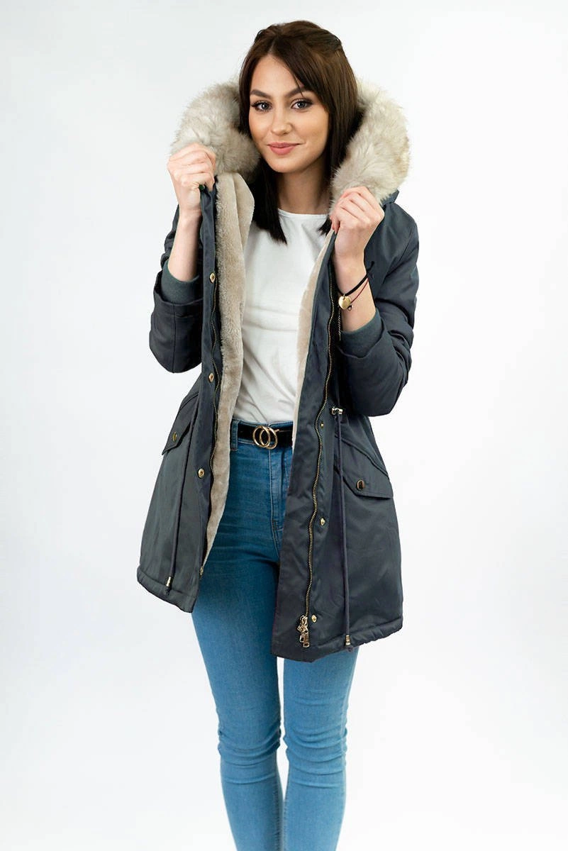 DAMSKA PARKA ZIMOWA NA FUTERKU GRANATOWA (B508)