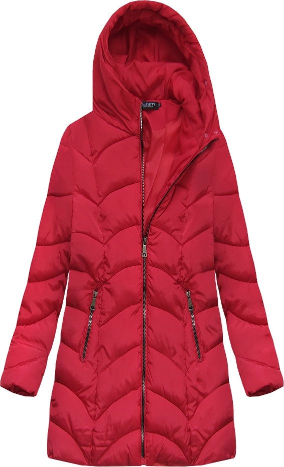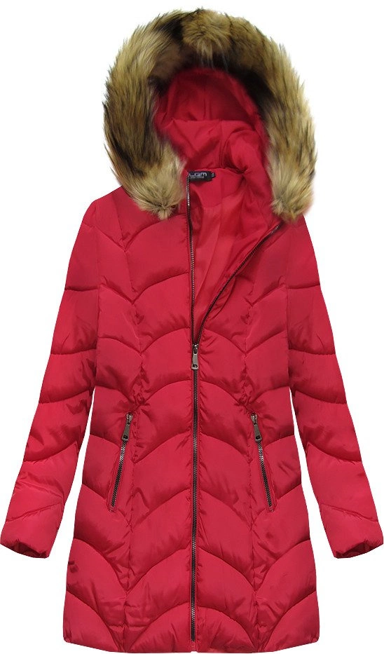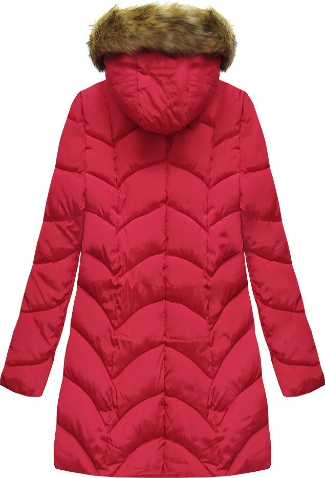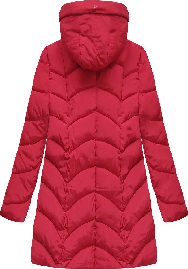 PIKOWANA ZIMOWA DAMSKA KURTKA Z KAPTUREM CZERWONA (X1801X)