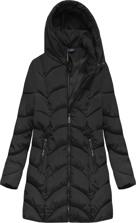 PIKOWANA KURTKA Z KAPTUREM CZARNA (X1801X)