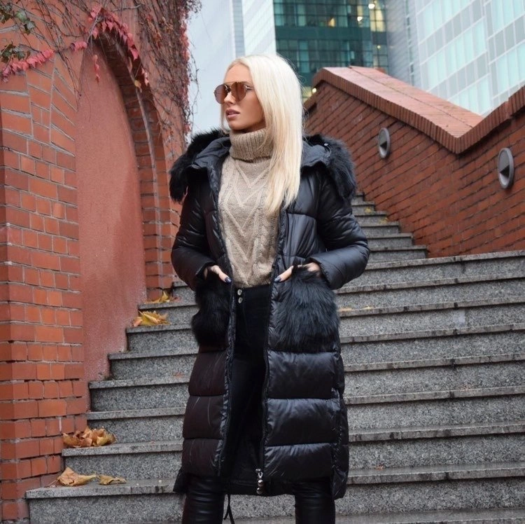 - Bardzo ciepła, dłuższa kurtka zimowa z kapturem